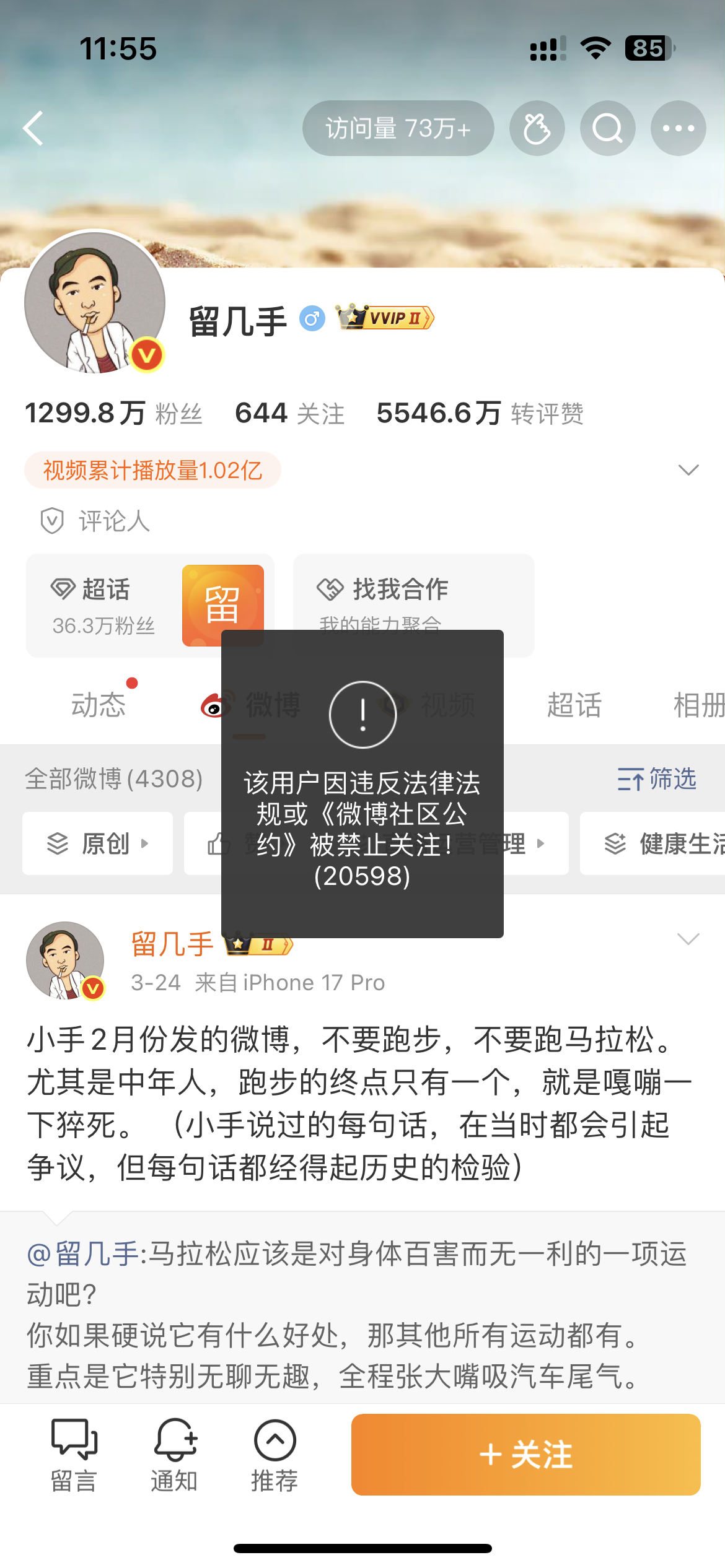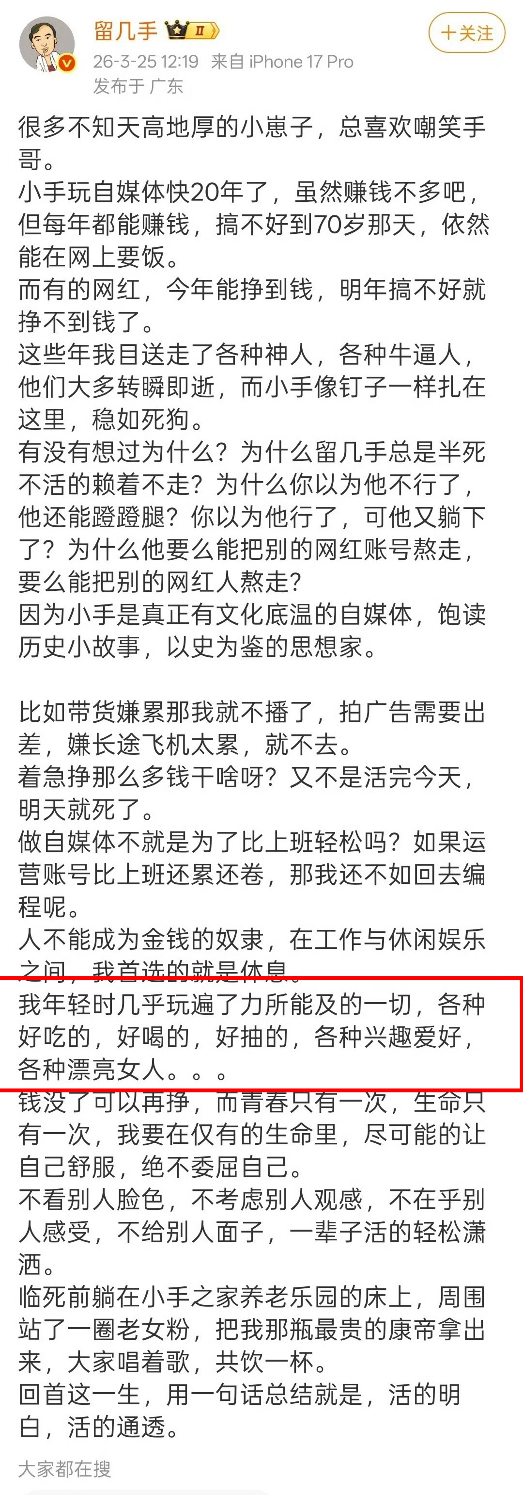 留几手被禁止关注,如何评价留几手的价值观?