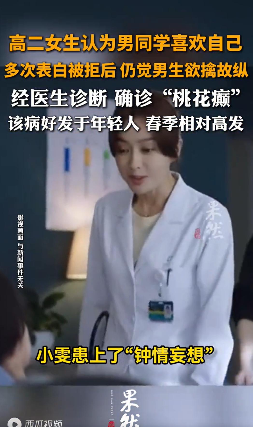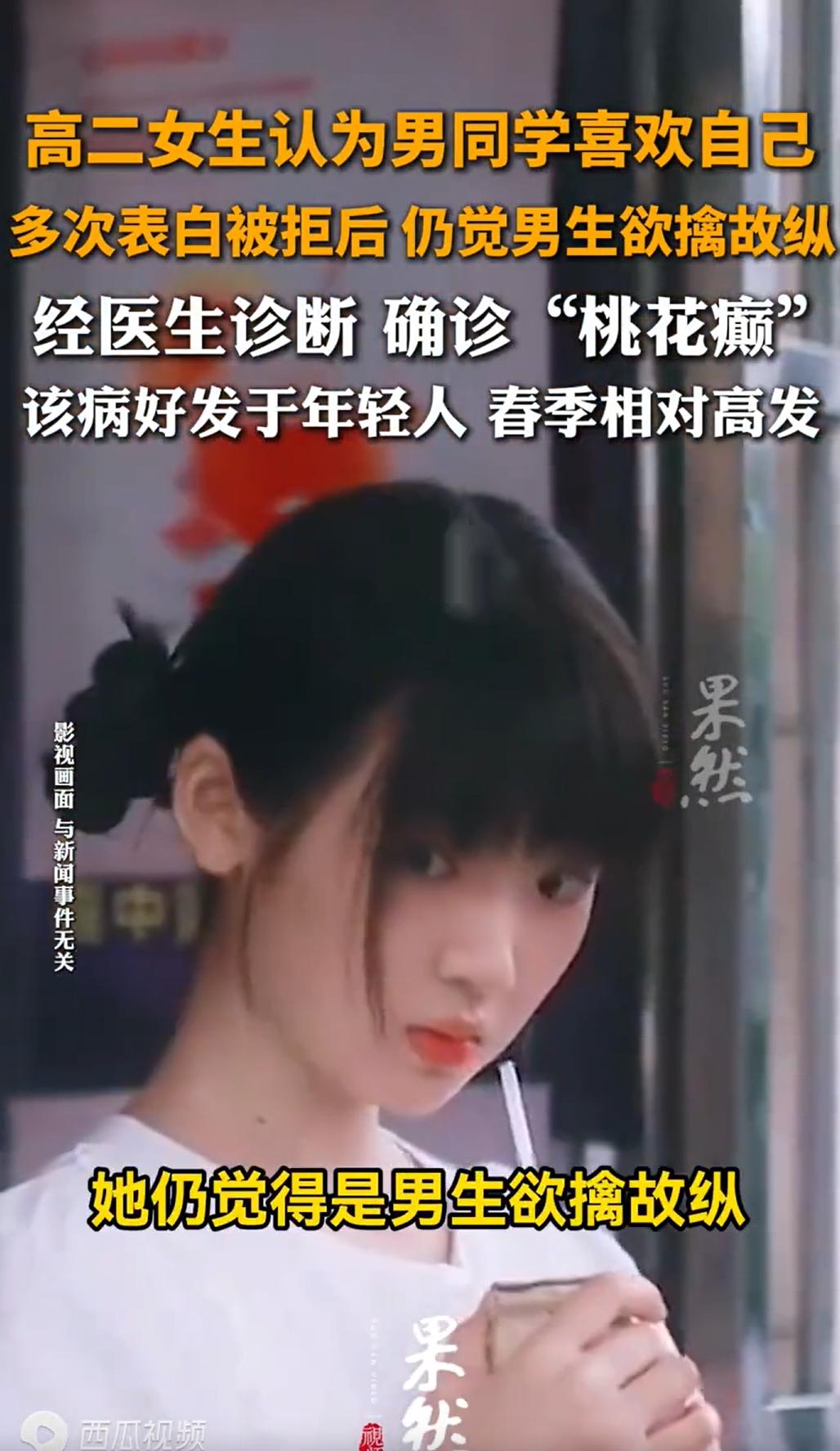 江苏,一高二女生把班里她觉得喜欢自己的男生,挨个表白了一遍,不是那种害羞的试探,是直接跟到人家楼下,堵在门口说“我知道你喜欢我”。被拒绝了也不难过,反而觉得对方是害羞,是不好意思承认。一个不行就换下一个。在她眼里,男生多看她一眼是传情,从她身边走过是靠近,连在走廊里笑一声都是在讨论她。整个人跟中邪了似的。家里人觉得不对,把她拽到医院,医生说,这不是桃花运,是病,是桃花癫。 女孩叫小雯,十七岁,高二,理科班。 小雯的变化,是从高一下学期慢慢露出来的。起初家里人没当回事。 青春期嘛,哪个女孩子没有点小心思?但当小心思变成笃定的念头,再变成具体的行动,事情就不一样了。 陈屿是班上的物理课代表,成绩中上,性格偏安静,平时话不多,跟女生说话还会脸红。 高一上学期,有一次物理课分组讨论,陈屿和小雯分到了一组,两人交换了微信,讨论了几句作业。 这在任何人看来,都是再正常不过的同学互动。 但小雯不这么看。 她觉得陈屿加她微信这件事,本身就是一种信号。后来她又注意到,陈屿每次收物理作业的时候,走到她桌边,动作会比别人慢一点。 小雯在心里反复确认这件事,他对我跟对别人不一样。 高二开学后,小雯开始行动了,她先是写了一张纸条,折成方块,趁课间塞进陈屿的笔袋里。 纸条上写着:“我知道你也喜欢我,你不用不好意思。” 陈屿看到纸条后,整个人都懵了,他把纸条揉成一团扔进垃圾桶,没当回事。 但小雯等了一天,没有等到回应,她觉得是陈屿害羞。 于是第二天放学,她直接跟着陈屿出了校门,一路跟到了他家楼下。 陈屿回头看见她,吓了一跳,问她干什么。小雯站在路灯下面,认认真真地说:“我喜欢你,你也喜欢我,我们在一起吧。” 陈屿拒绝得很干脆:“我不喜欢你,你别再跟着我了。” 说完转身上了楼。 但小雯心里想的不是“我被拒绝了”,而是“他不敢承认,是因为他爸妈在家,他怕被发现”。 很快,班里的男生,一个接一个地进入了小雯的“名单”。 先是坐在她斜后方的男生周鸣,周鸣有一次找她借了一支笔,还笔的时候说了句“你的笔挺好写的”。 就这么一句话,小雯记下了,她觉得周鸣是在找借口跟她搭话,借笔是假,想接近她是真。 然后是体育委员孙浩,孙浩在体育课上喊口令,声音大,中气足。 小雯站在队列里,觉得孙浩喊口令的时候往她这边多看了一眼。 她在心里断定,孙浩是在用这种方式引起她的注意。 再后来是班长李知行,李知行在班会上念通知,念到一条关于周末补课的内容时,扫了一眼全班。 小雯觉得那一眼是在看她,是在暗示她周末可以一起出去。 她不是随便想想,对每一个被她“认定”的男生,都会采取行动,主动发微信,内容直白得让人不知道该怎么回:“你是不是喜欢我?”“你不用藏着,我能感觉到。” 对方不回复,她就追着问。对方回复“你想多了”,她就说“你才想多了,你明明就是喜欢我”。 更让老师和同学们头疼的是,她开始跟踪,不是跟踪一个人,而是轮流跟踪。 有男生跟班主任反映了情况,班主任找小雯谈过两次话。 小雯坐在办公室里,态度很好,一直点头,说“我知道了”“我不会了”,但出了办公室,该怎么做还怎么做。 班主任又打电话给小雯的父母。 小雯的父母知道情况后,担心孩子身体问题,当即请了假,带着小雯去了医院。 医生没有一上来就问病情,而是先跟小雯聊了聊。 医生问了一个多小时后,揉了揉鼻梁,说了一句话:“孩子这个情况,叫钟情妄想。民间有些地方叫‘桃花癫’。它不是普通的早恋,也不是性格问题,是一种妄想状态。” 父母问:“这……是精神病吗?” 医生解释说,钟情妄想可以是独立的精神障碍表现,也可以是某些精神疾病发作的一个症状。 父母在旁边,眼泪一直掉,他们怎么也想不通,孩子怎么就成了现在这个样子。 有网友说,很多人把“桃花癫”当成开玩笑,其实这是一种典型的妄想症。不是她“想多了”,是她的大脑已经失去了判断现实的能力。这种病最可怕的地方就在于,病人自己完全意识不到自己病了。 《民法典》第一千一百六十五条规定,行为人因过错侵害他人民事权益造成损害的,应当承担侵权责任。 本案中,小雯在发病期间,多次跟踪男同学至其住所楼下,反复发送直白甚至令对方不适的表白信息,并在教室黑板上书写“我知道你们都喜欢我”等不当内容,这些行为客观上导致被跟踪的男同学产生恐惧、困扰,班级教学秩序受到干扰,涉嫌侵权。 而结合《民法典》第一千一百八十八条规定,限制民事行为能力人造成他人损害的,由监护人承担侵权责任。 小雯系限制民事行为能力人,其对同学造成的损害,应由父母承担相应赔偿责任。 对此,你怎么看?