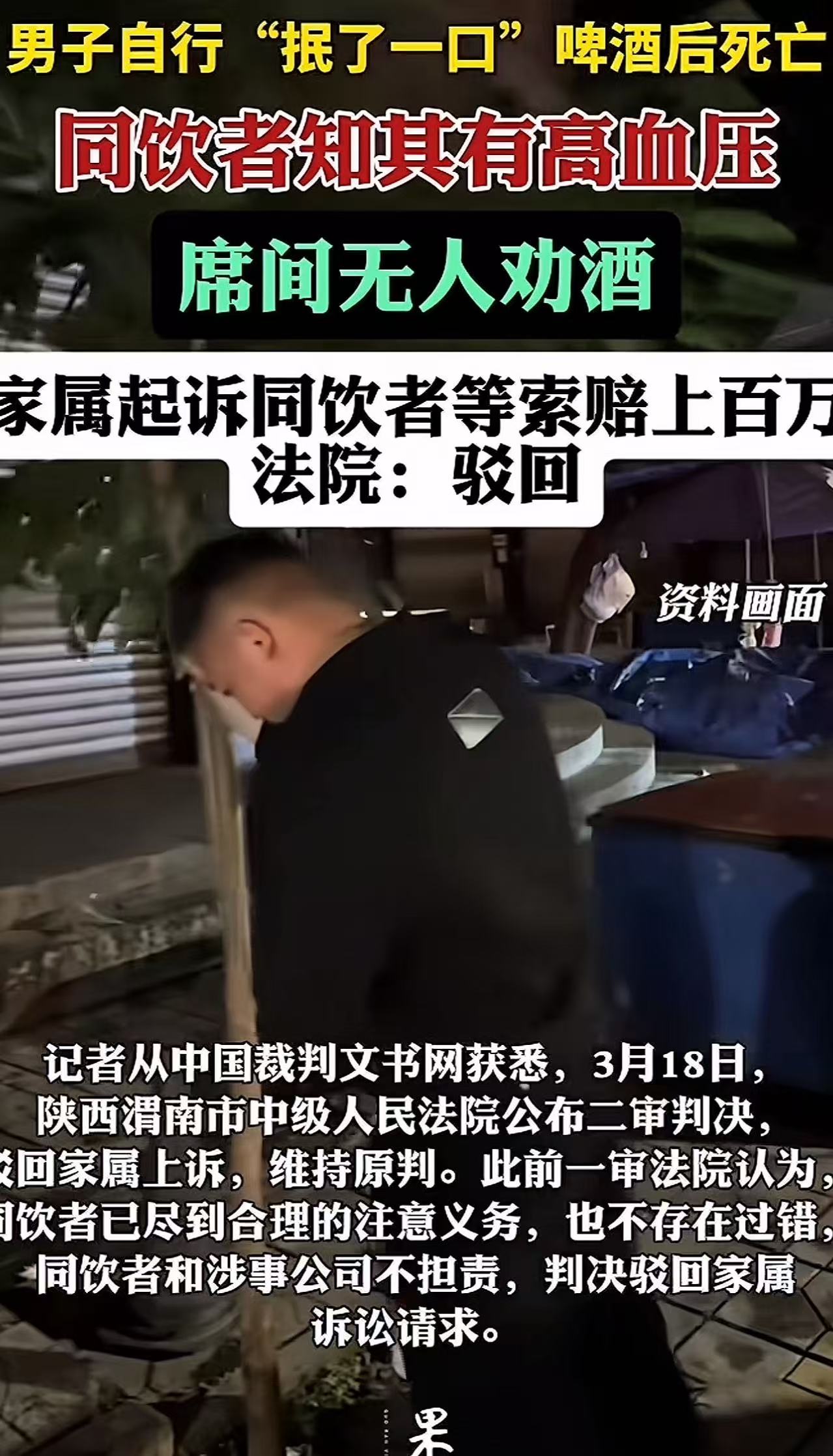 这次必须给法院点赞!男子在酒桌上主动抿了一口啤酒猝死,家属张口索赔143万!法院硬气判决:驳回!网友:吓得我都不敢请朋友喝酒了!