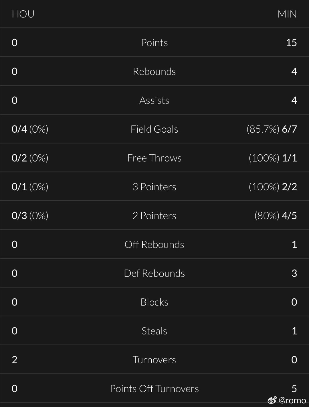 没助攻没得分没篮板没断球,除了两个失误,其他全都是零蛋休斯顿火箭
