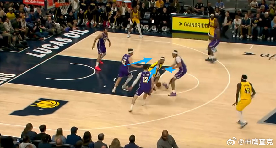 123456内姆布哈德持球过半场后,先是抓早期进攻与西亚卡姆、胡夫发动“Double Drag”战术,随后无缝衔接与胡夫的挡拆发起。挡拆行进间,内姆见防挡拆守GAP位沉退/高位沉退的海斯向左横移、防守注意力被自己吸引,立即回传给弧顶大空位的胡夫,助其三分命中——通过一记帮助球队打破开局0-10得分荒的同时,也为自己生涯最强传球表演拉开了序幕。