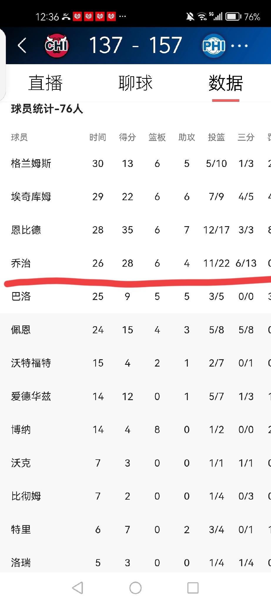 泡椒复出首秀杀疯了!这状态谁顶得住啊 自2026年1月29日被联盟禁赛25场之后,今天上午保罗·乔治终于迎来久违首战! 对阵公牛仅出战26分钟,狂砍28分6篮板4助攻4抢断,零失误完美发挥,带队157-137狂胜对手。 歇了这么久一上来就攻防两端彻底拉满,这手感简直热到发烫,完全不像久疏战阵的样子。 今天的泡椒也太无解了!