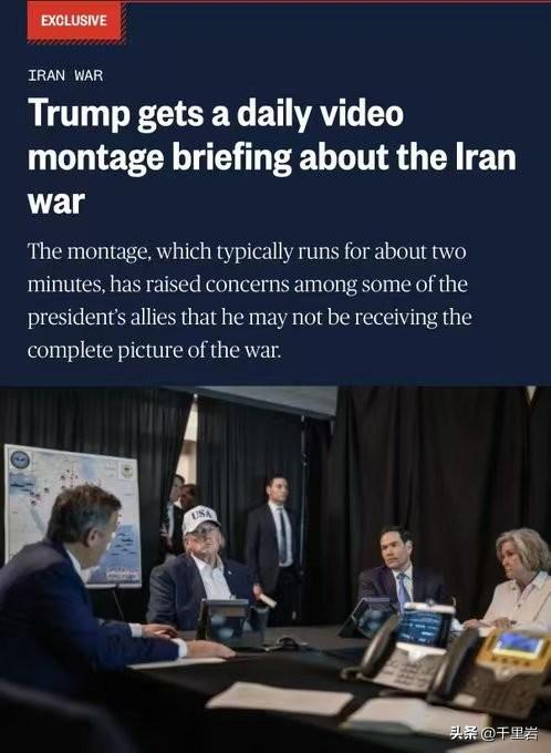 老川普很可能跟称帝前的老袁一个处境? 如果真的存在着一个川普版的顺天时报,你也别奇怪啊! 按照下图的这个美国媒体报道,现在在华盛顿政界的高层圈子里,尤其是老川普的政治盟友圈子里开始流传这样一个小道消息: 老川普每天看到的那两分钟关于对伊朗战争情况的视频简报,里面就是炸这里很顺利,炸那里又炸中了…… 事实上,老川普对于这场战争打成了什么熊样,根本毫不了解。 嗯,这个小道消息看来也不全是捕风捉影还是有相当合理性。 而川普周围的那一圈人也很可能真的这么对老川普。 毕竟人性都是相通的。大公子能那么玩老袁,这帮鸟人凭啥不能这么玩老川普??