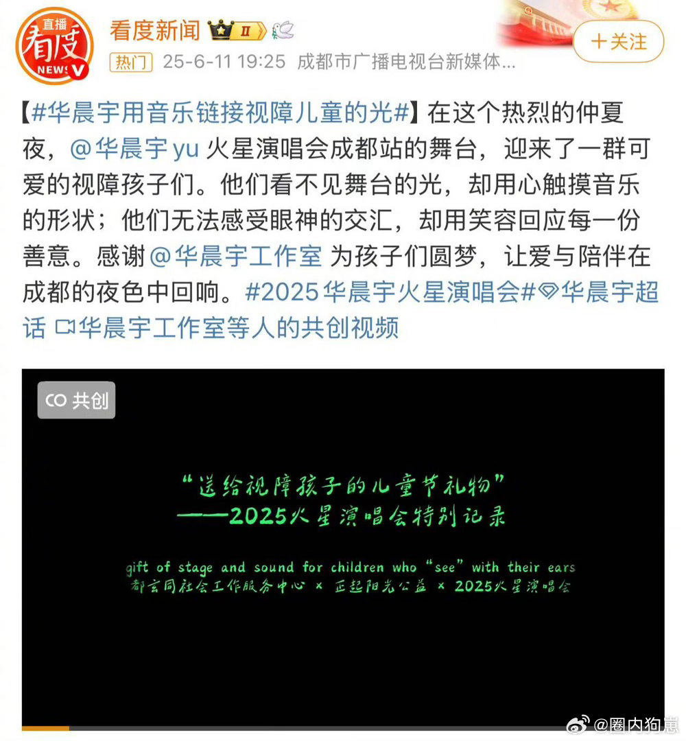 华晨宇的格局 优质偶像当如此!华晨宇将音乐与公益相融,火星乐园演唱会2.0助力生态环保,把影响力化作守护自然的力量,温柔又有格局。
