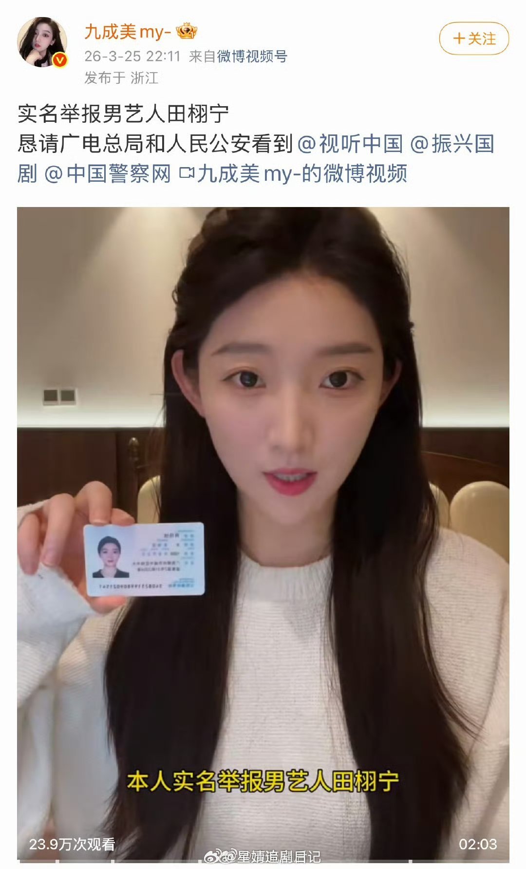 九成美实名举报田栩宁