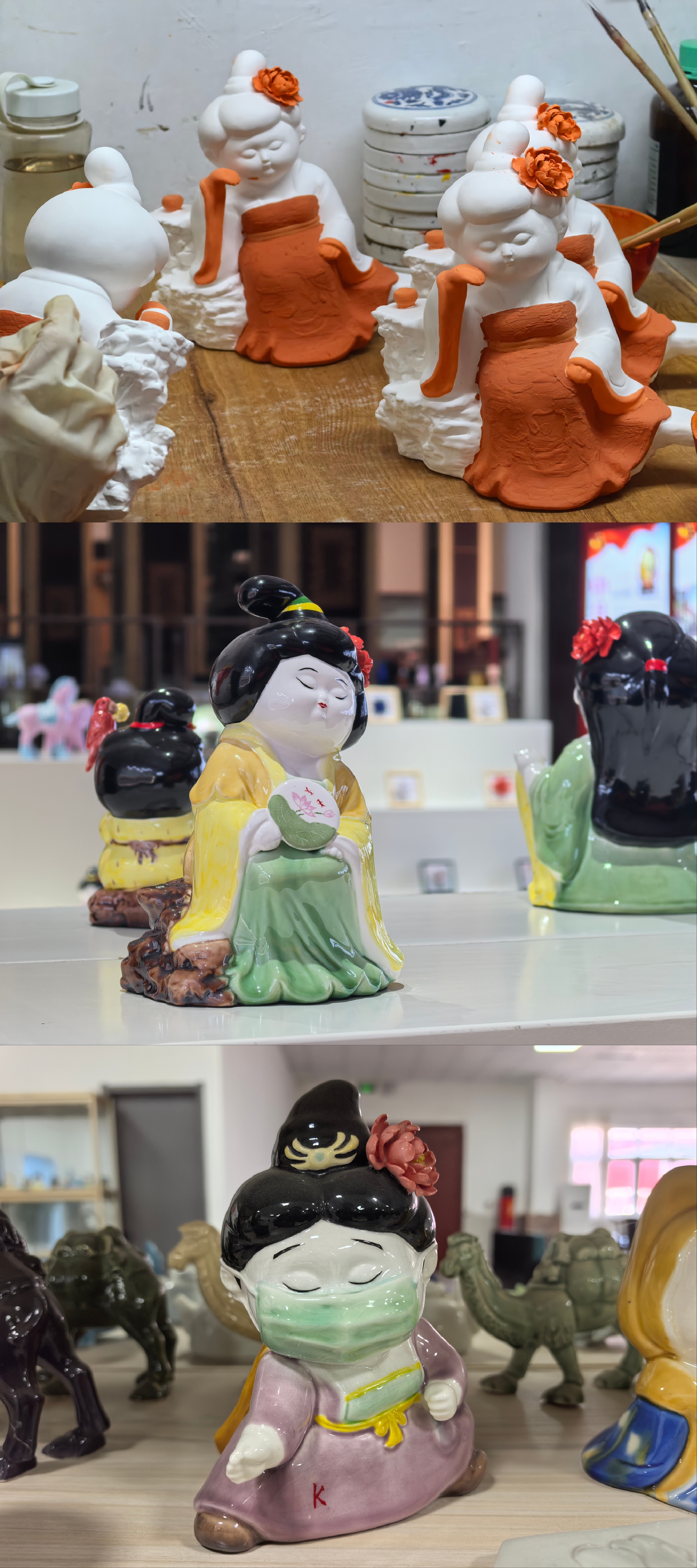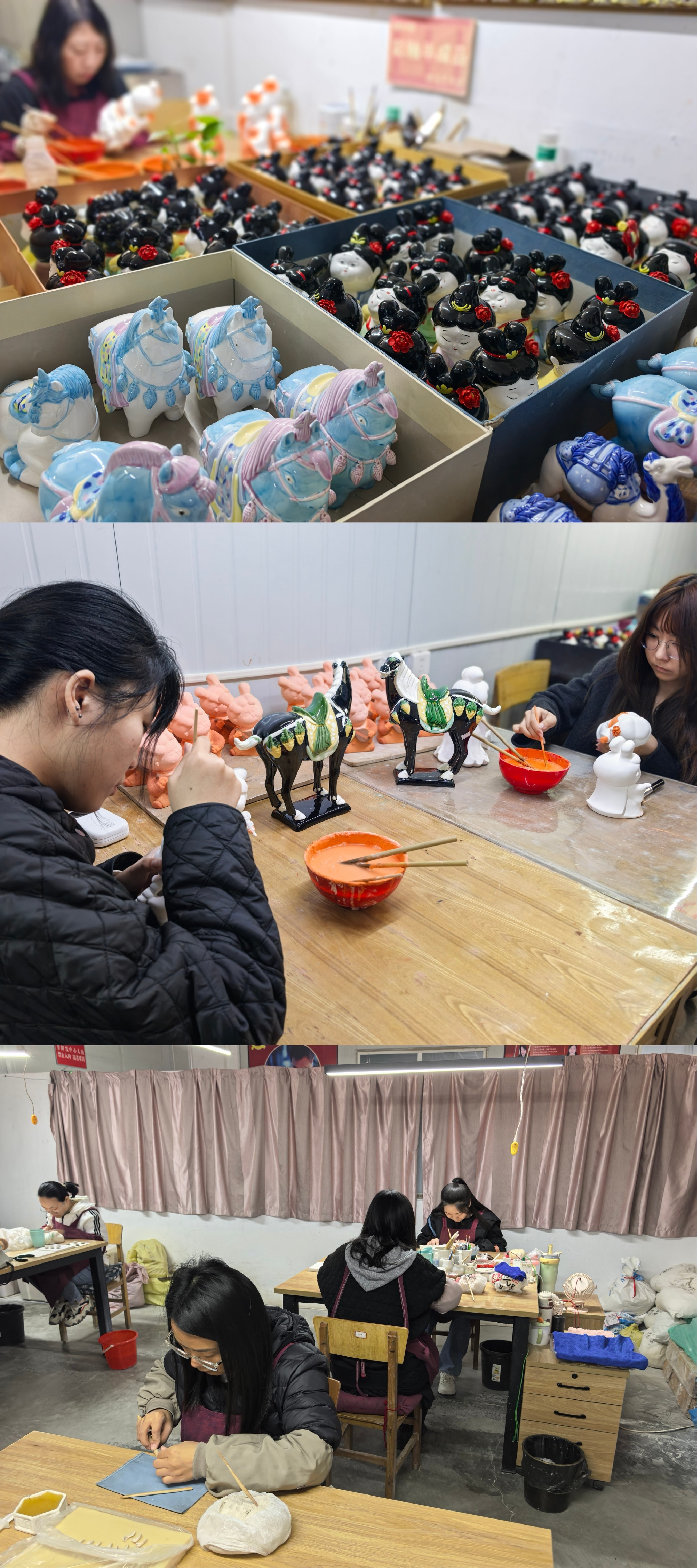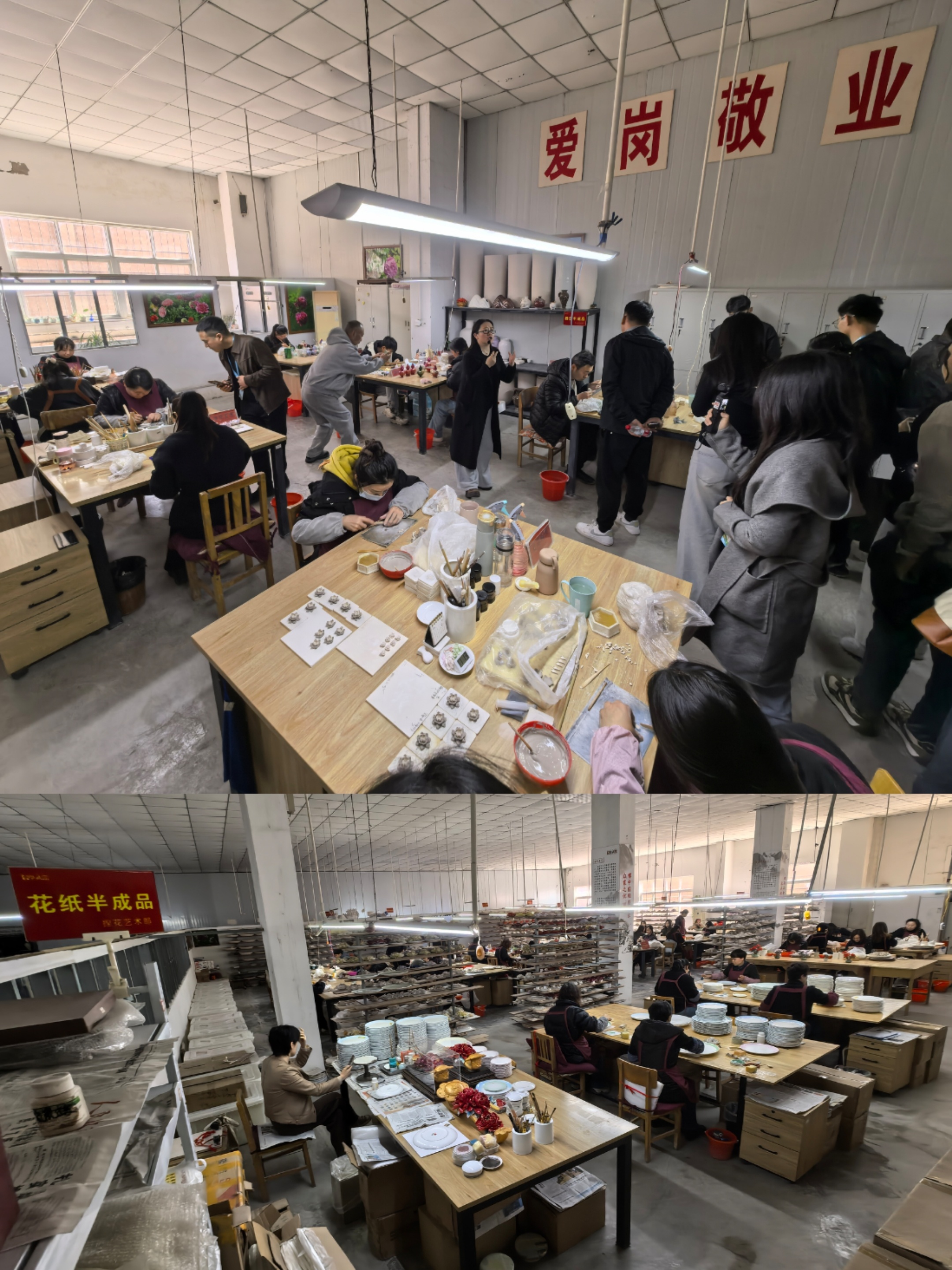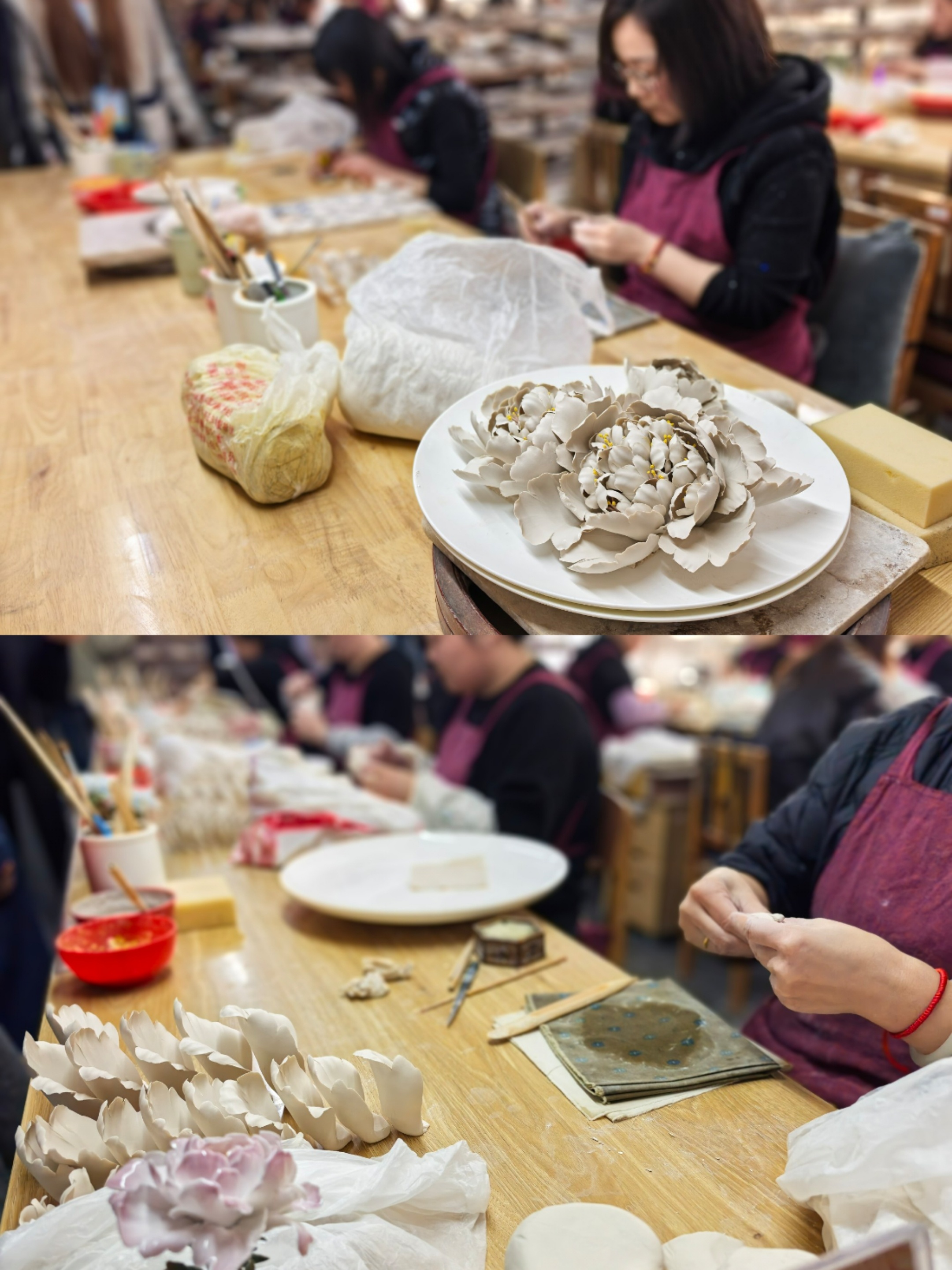 走进牡丹瓷的制作车间,二十多道工艺均为纯手工制作,款款形态各异、千姿百态。每件牡丹瓷都需要经历选泥、塑形、雕刻、素烧、釉烧等数十道工序,有的成品需要经过大大小小近百道工艺流程。