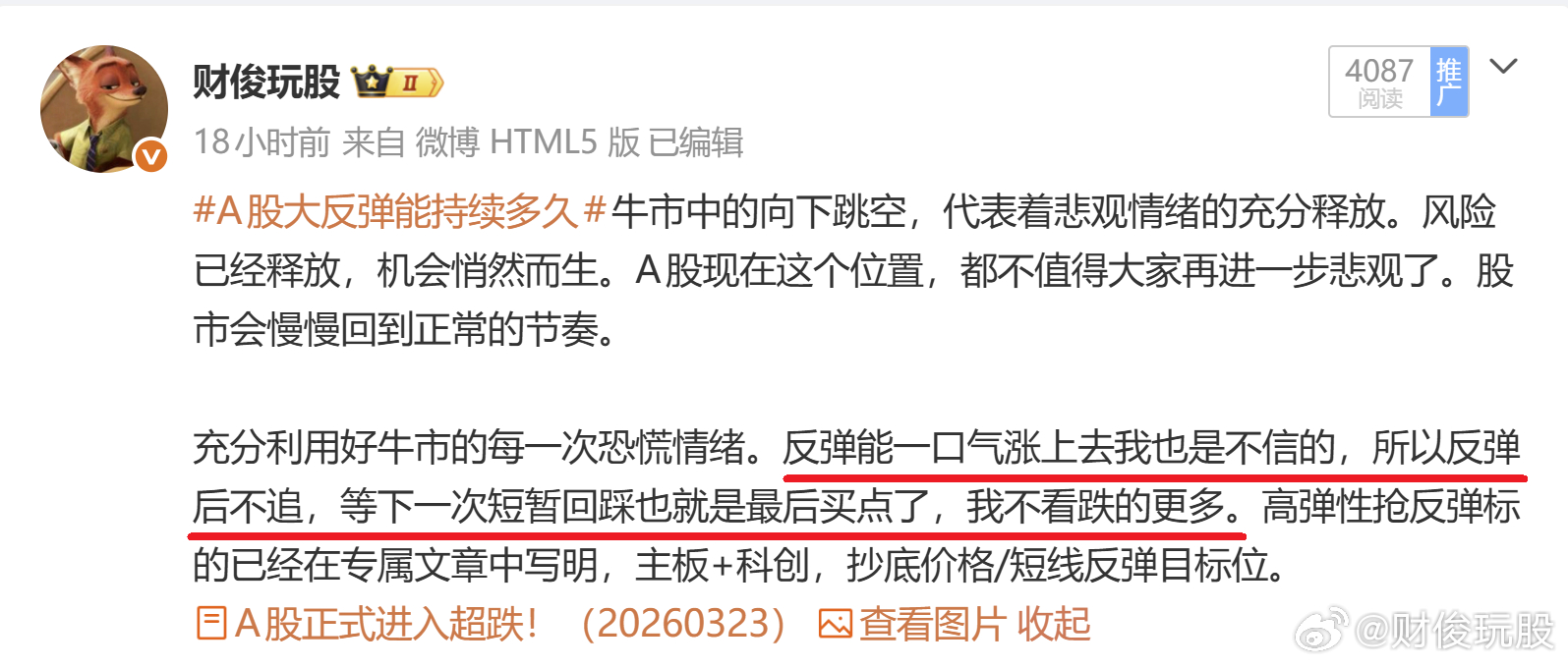 当然涨的时候都觉得是这个道理,真正在下跌时能否敢于“逆行”就要看胆量了。胆量来自认知,认知来自经验,见得多了也就知道怎么做更接近正确。