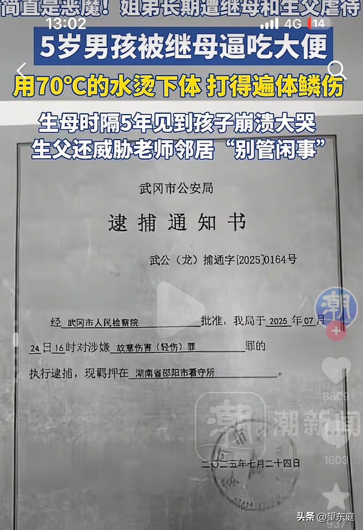 湖南两姐弟被继母虐待事件背后,最让人意想不到的是:孩子继母是当地医院烧伤科的护士!她作为一个本该救死扶伤的白衣天使,却连家里的两个孩子都容不下! 两个可怜的孩子一个5岁,一个15岁。 十几年前,他们的母亲丁女士从湖北咸宁远嫁到了湖南邵阳武冈。十来年的婚姻生活中,她先后生下三个孩子,可好景不长,最小的孩子元宝刚出生不久,丁女士就与丈夫离婚了。 自此,丁女士的大女儿和小儿子元宝被留在了武冈生活,她则带着老二回到了湖北。 时间如梭,五年多的时间很快就过去了。在这期间,前夫一直想方设法阻止她看孩子。直到2025年,她才见到阔别已久的孩子们。 可见面的那一刻,丁女士简直不敢相信自己的眼睛。 原来,这些年里,两个孩子一直过的很苦。 自孩子的父亲再婚后,他又生下了一个儿子。同样都是自己的亲骨肉,但这位父亲的做法简直让人匪夷所思。 很多时候,他都会带着再婚老婆和最小的孩子出去吃饭,两个大孩子则被关在家里什么都没得吃。 15岁的姐姐,承担着家中大大小小的家务,明明有洗衣机,但继母就是不让她用。每次看到她书写的工工整整的作业本,继母就会发火撕掉……而可怜的小元宝才五岁多啊,他经常饿到去小区垃圾桶里找食物。一次,他因为继母故意设置的热水器水温,下体隐私部位被严重烫伤。2025年4月,母亲见到他的时候,他身上淤青面积达到了全身皮肤的一半! 一个有着体面工作、穿着白大褂的女护士,居然会如此恶毒的去对待两个无辜的孩子,实在是令人不齿! 更让人难以接受的是,他们的父亲眼睁睁目睹了再婚妻子对孩子所做的一切,他却什么也不说! 好在,人究竟是要自己的言行负责的。事情被曝光后,孩子生父继母被一一逮捕!现在,两个可怜的孩子,也被母亲接回了湖北生活。 坦白说,由始至终都搞不懂这个继母究竟是怎么想的?都说爱屋及乌啊!既然她接受了一个二婚带孩子的男人,就应该善待他的儿女。 继母虽然可恨,但有一点不可否认:在这个事件里,更该谴责的是孩子的生父。如果不是他的冷漠与纵容,继母又怎敢如此呢?[祈祷][祈祷][祈祷]