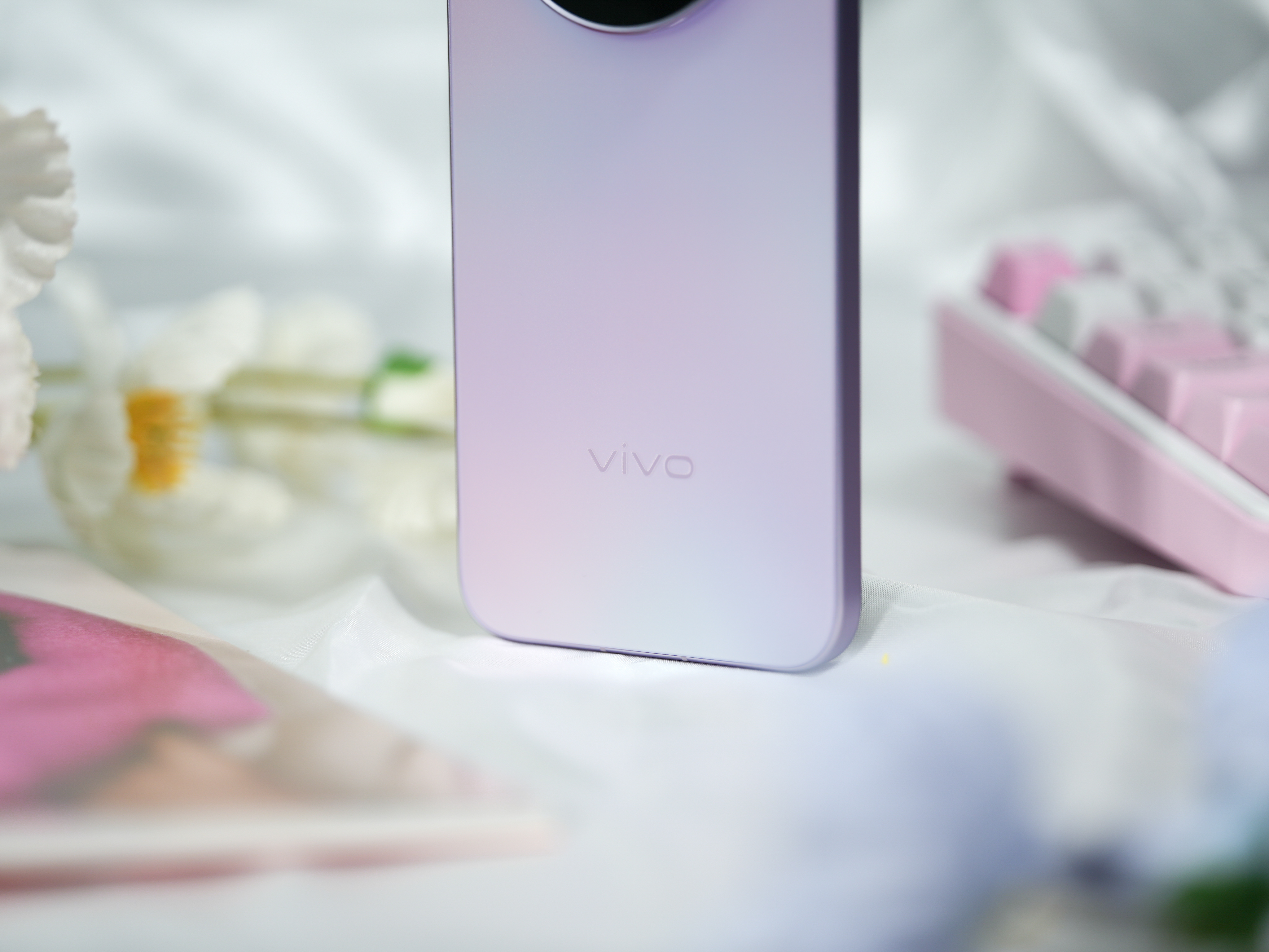 机身背面看上去不是普通的紫色,是有种紫中泛粉的效果。