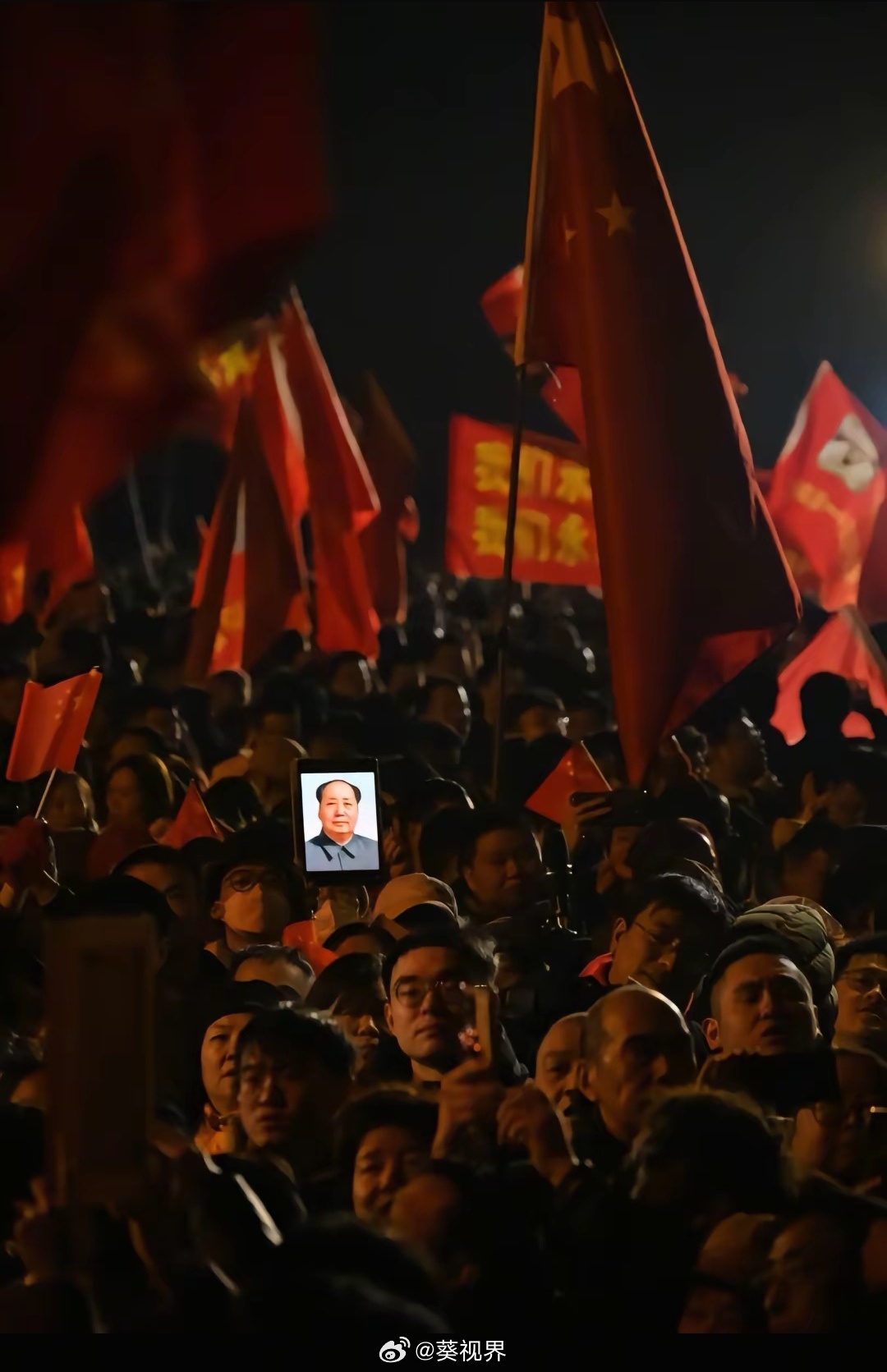 图2,视频截图。2025年12月25日晚上,来自五湖四海的20万民众自发聚集韶山,等待26日凌晨时刻的到来,红旗招展,人流如河。