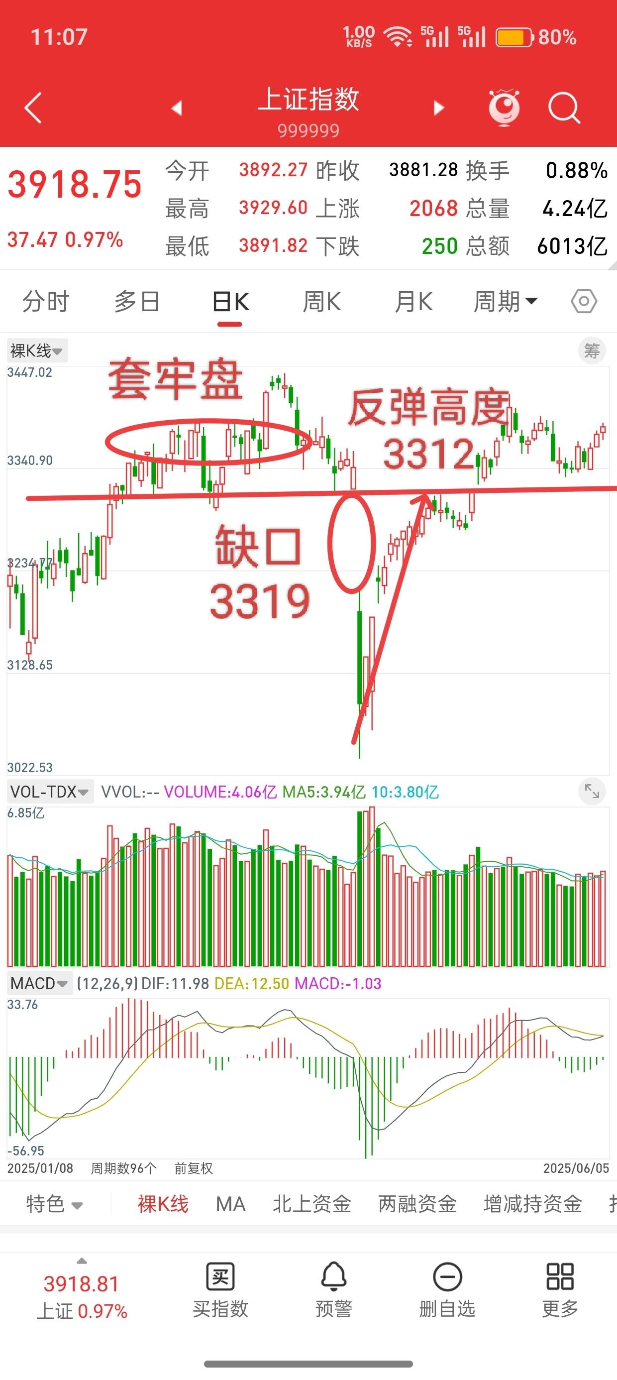 A股,今日放量大涨,接下来历史或许总是惊人的相似! 先说观点,回顾历史,去年4.7号跳空缺口3319,后面回补,第一波反弹高度3312,差7个点,然后开始回调,再上攻。 历史会不会简单重复?谁也不敢打包票,但市场的记忆和惯性确实存在,尤其是关键点位附近,多空双方的心理会形成一种微妙的共识。今天这个放量大涨,好比吹响了冲锋号,说明有真金白银冲进来了,不是小打小闹。大伙儿的情绪一下子被点燃,都觉得“这回不一样了”,“牛市要来了”。 但越是这种时候,越得冷静,看看前面那座“山”。去年4月那个3319点的跳空缺口,和反弹到3312点就掉头,像两座无形的路标立在那里。很多经历过那波行情的老手,心里都记着这个数。当指数再次接近这个区域,去年在这里挨过打、割过肉的资金,本能地会紧张,会犹豫。他们会想:上次到这儿就崩了,这次能过去吗?这种集体记忆形成的心理压力,会让3310-3320这一带变得非常“粘稠”,抛压会自然而然加重。 所以,接下来几天特别关键。如果市场足够强,增量资金足够猛,能一口气放量冲过去,并且站稳,那就相当于把去年那批“套牢盘”全部解放,也打破了那个“魔咒”,行情空间就真的打开了,向上的阻力会小很多。那时候,喊牛市的声音会更有底气。 但如果冲到那个位置附近,量能跟不上了,开始滞涨、震荡,甚至出现冲高回落,那就要小心了。这可能意味着去年的剧本又要上演——在压力位前多方力量耗尽,获利盘和解套盘一起砸出来,市场再次陷入回调。今天的“大阳线”可能就只是一次激烈的“试探”,而非决定性的“突破”。 对咱们散户来说,现在最好的策略是“乐观但别狂热”。别一涨就all in,觉得马上要暴富。可以跟着趋势走,但手里一定要有“底牌”(现金),别把筹码全打出去。如果真能放量突破并站稳关键压力位,再加仓都来得及,右侧交易更稳妥。如果出现滞涨信号,该止盈的部分要舍得走,别贪。 市场永远在变,但人性不变。去年的高点成了今年的心理关,能不能过去,取决于这次进场的资金实力和决心,到底有多强。盯着量,盯着那个关键区域的表现。历史会相似,但不会完全相同。这次是重演“遇阻回落”,还是谱写“突破新高”,答案就在接下来几天的盘面里。 各位读者你们怎么看?欢迎在评论区讨论。怎样让自己开心快乐起来 什么样的关系才是最舒服的两性关系 大盘股下跌 大盘a股