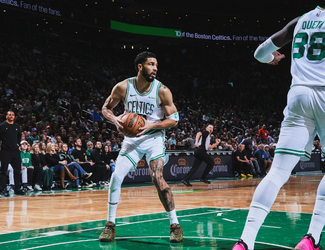 塔图姆属于,看球的球迷没看到机会,他已经把球传到位了。
