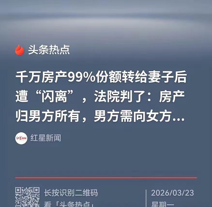 上海,一小伙与离异带娃女相识一个月后闪婚,婚后女方以孩子要落户上海上学为由,怂恿他把近千万房产99%份额转到自己名下,没想到份额刚转没几个月,女方就提出离婚要分走房子!最终法院这样判决! 信息来源:红星新闻 说真心话,听到这结局我也是又气又乐。 话说23岁的刘亮,刚从部队退伍,年轻人单纯得像张白纸,碰上36岁的离异带娃女李琳,一路聊得火热。 2018年3月,两人顺风车里一聊就是几小时,出来就互留了微信。 一个月后,俩人就打包去民政局登记,说白了就是闪婚。 但这婚可不简单。 刘亮家的那套安置房,可是他父母老宅拆迁所得,价值近1000万,原本登记在他和父母三个人名下。 因为担心将来当继承人得交大笔遗产税,刘亮跑去跟老人讲:“爸妈,不如把我那份先给我,咱省点事儿。” 老人一番唠叨后,就把他那份都给了他。 谁料,这份刚到他手上四天,他就带着李琳直奔不动产登记中心,一下子把99%都过给了她,只给自己留了1%。 李琳那会儿可卖力了,天天跟刘亮灌输“咱家娃要上学必须落户上海”“没房产怎么给孩子分学区”,一套话术猛戳父爱。 为了“孩子好”,刘亮也没多想,觉得反正是给一家人,房子写谁名字都一样。 可日子才过了半年,俩人就分居了。 李琳先后两次起诉离婚,每次都不提房产分割这茬儿,好像房子跟她没半毛钱关系似的。 等第三次上法庭,她拿出那本写着99%份额的房产证,理直气壮地要按这个比例分房产。 刘亮一看,这得了便宜又卖乖,是当场懵了。 法官可不是看表面数子。 调查一番:这房子根本是刘亮小时候继承的拆迁款,他当年11岁没出过钱;李琳对房子半点贡献都没有,而且他俩领证到如今也就共同生活了六个月,婚礼、孩子、好好过日子的例行仪式根本没一个有。 更可气的是,李琳明明在房地产公司干过,知道来路清清楚楚,却连句招呼都没跟老人打。 于是,长宁法院一审就判:房子归刘亮所有,他只得给李琳50万折价补偿,还要配合办理回登记。 女方不上心,又不服,上诉到上海一中院。 结果呢?2025年3月31日,二审引用最新的《民法典婚姻家庭编解释(二)》第五条第二款,驳回上诉,维持原判。 这事儿告诉大家,婚姻不是买卖,房产证上写谁的名字,可不意味着它就说了算。 法律在看重感情本质、双方对家庭的实际贡献,还有婚姻持续和共同生活的时间。 那套房子是老人一辈子的积蓄,哪能让年轻人冲动下随意送人? 李琳的“软磨硬泡”套路,最后也被法律戳破了。 谈恋爱可以,但是别冲动把房子、车子什么的写对方名字, 真要给,就留个底,签书面协议,找律师看看,当心“爱情买卖”输得不止是情面,还有父母一辈子的血汗钱。
