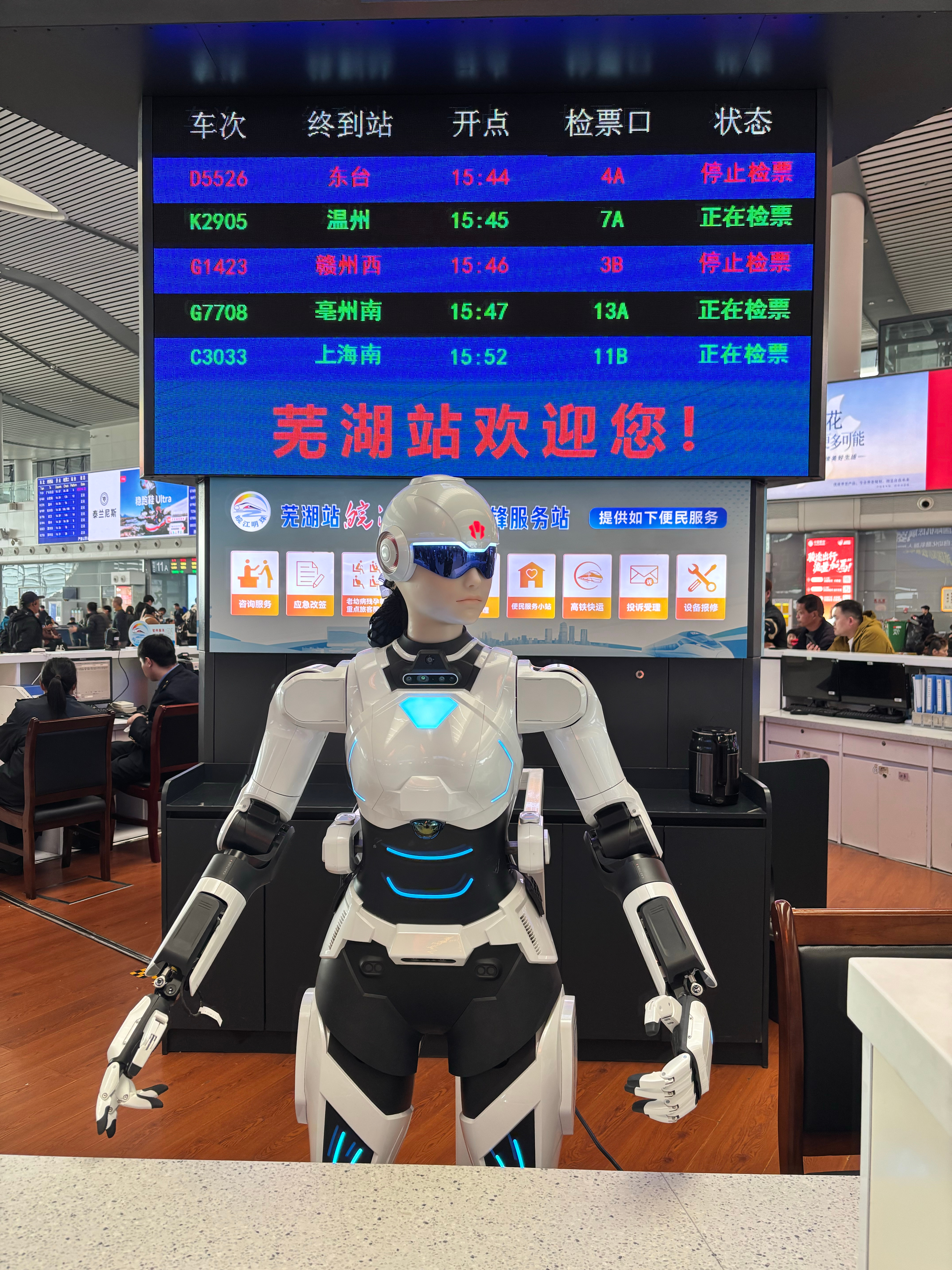 芜湖高铁站的服务台有机器人,现在更多是“观赏大于实用“但不久的将来应该就是全能向导了,不知道语音对话最大的问题会不会是方言口音芜湖·芜湖站