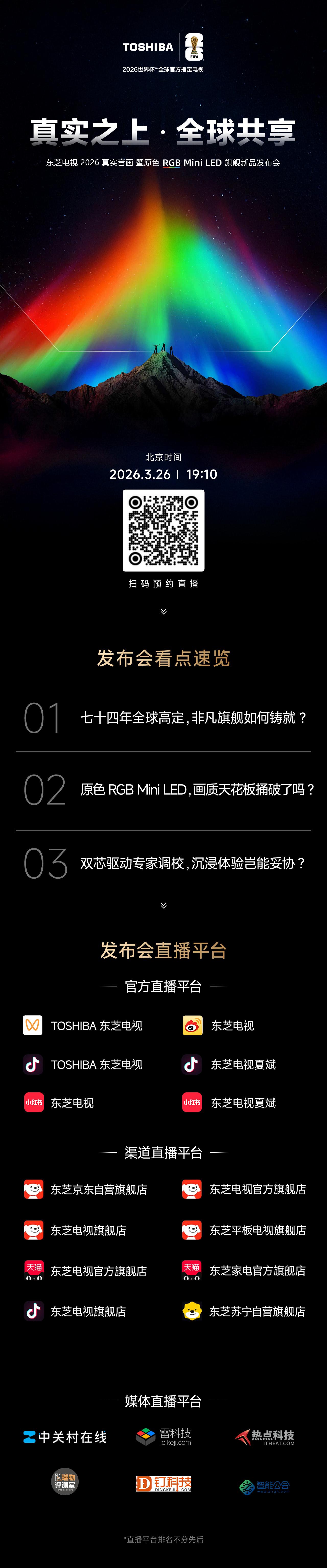 颠覆即将发生 今晚19:10 东芝电视2026新品发布会 扫码预约,见证真实