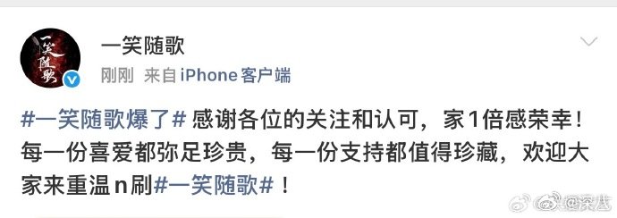 一笑随歌欢迎大家来重温n刷一笑随歌回应爆了一笑随歌欢迎大家来重温n刷,官博活了