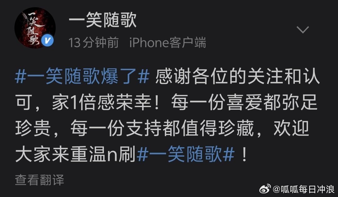 陈哲远《一笑随歌》官微发文了:欢迎大家重温n刷一笑随歌。