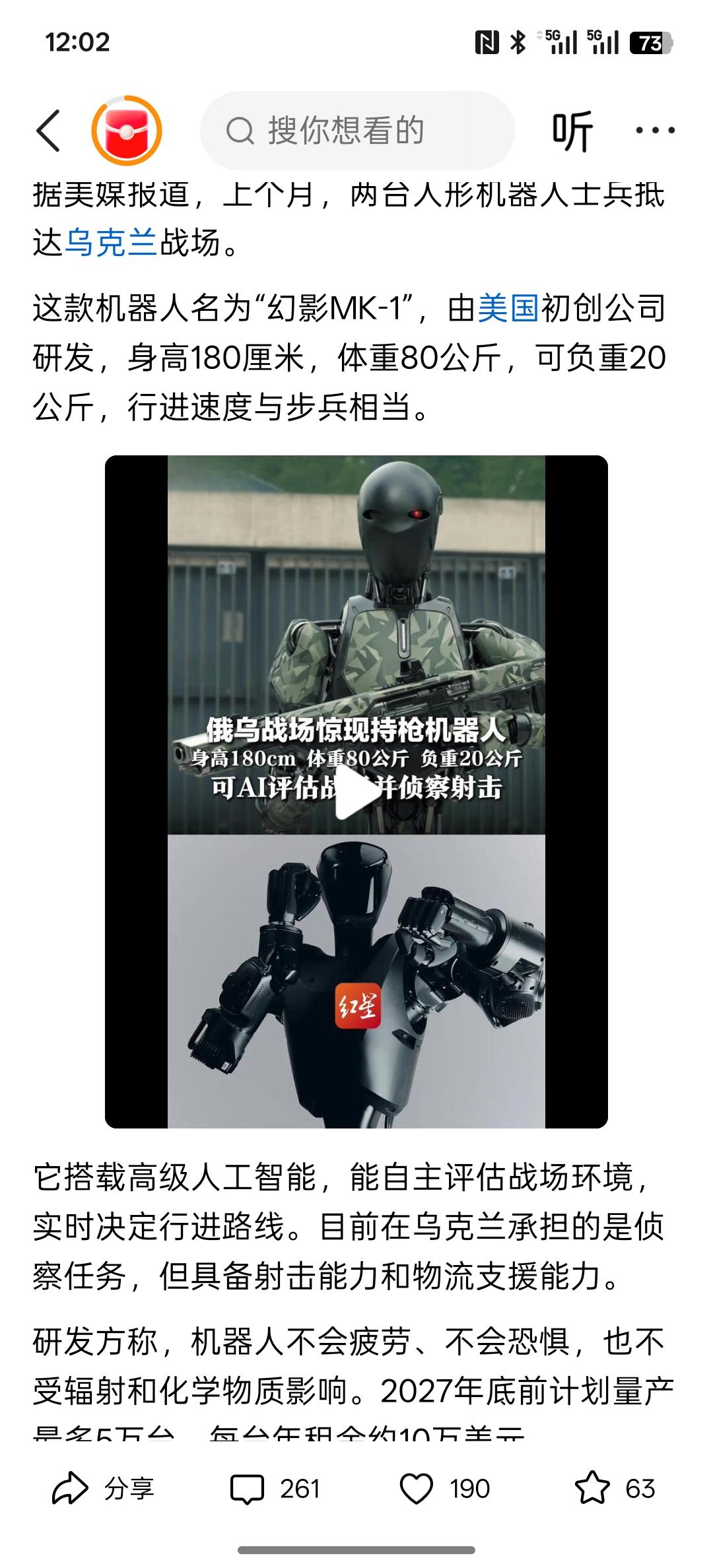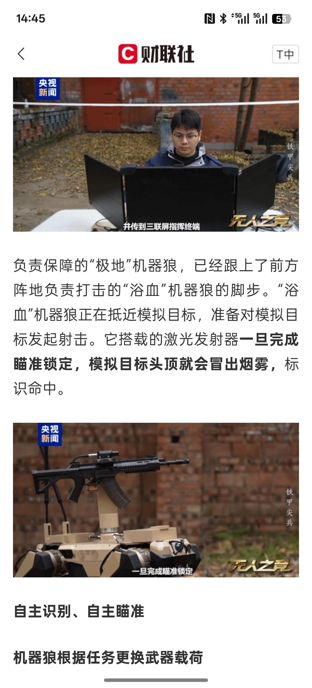 俄乌战场惊现持枪机器人:身高180cm、体重80公斤、负重20公斤,可AI评估战场并侦察射击,这种机器人未来大力发展成为战场上的持枪机器人,进入战场进行作战完全有可能!机器人军团将成为现实! 我已经在发展机器人作战部队,尤其是机器狗飞行,无人机都可以配备相关武器!中国的机器狗作战,已经形成了一定的战斗力!侦查方面,同样已经实现了自动化机器!