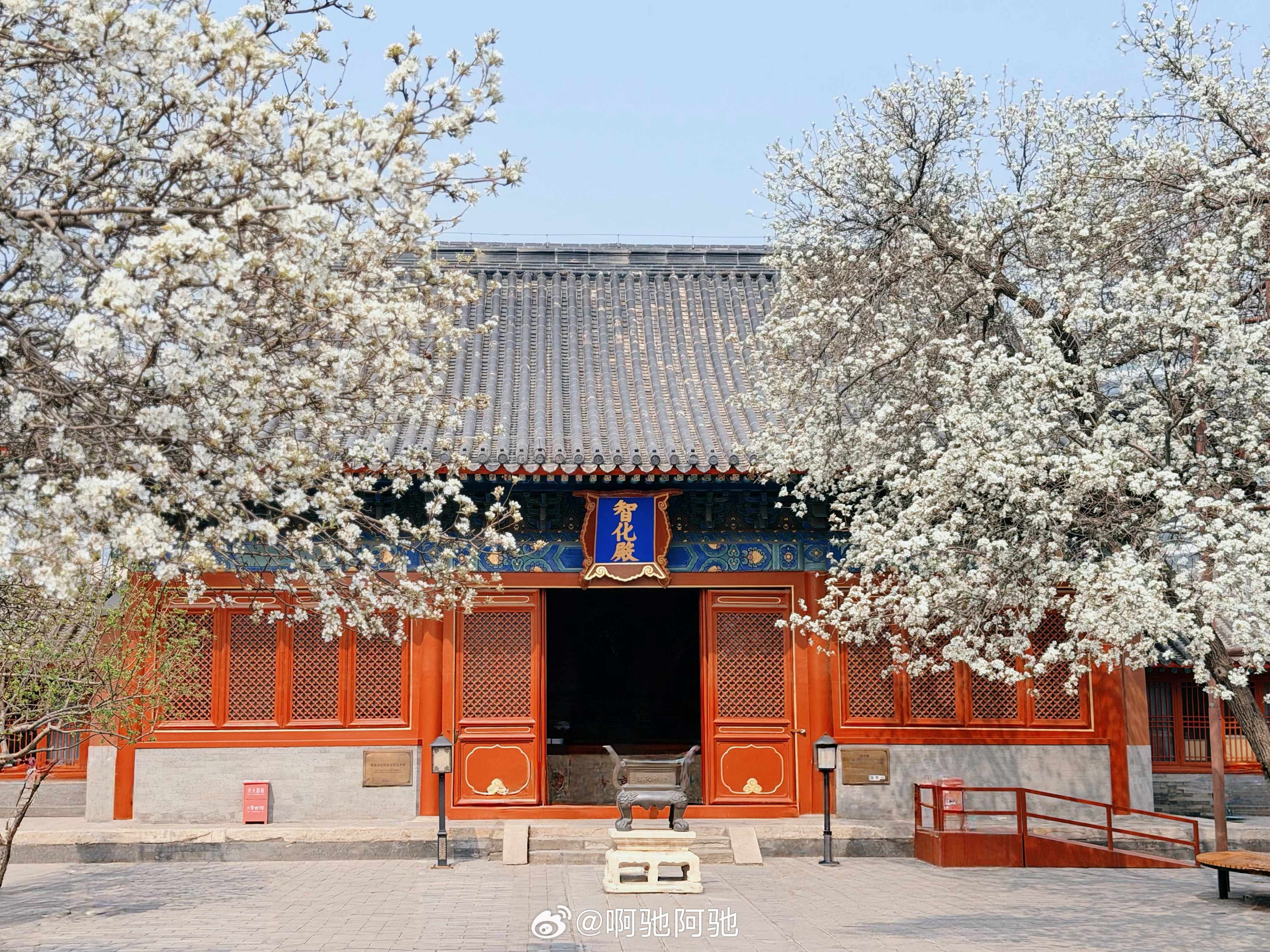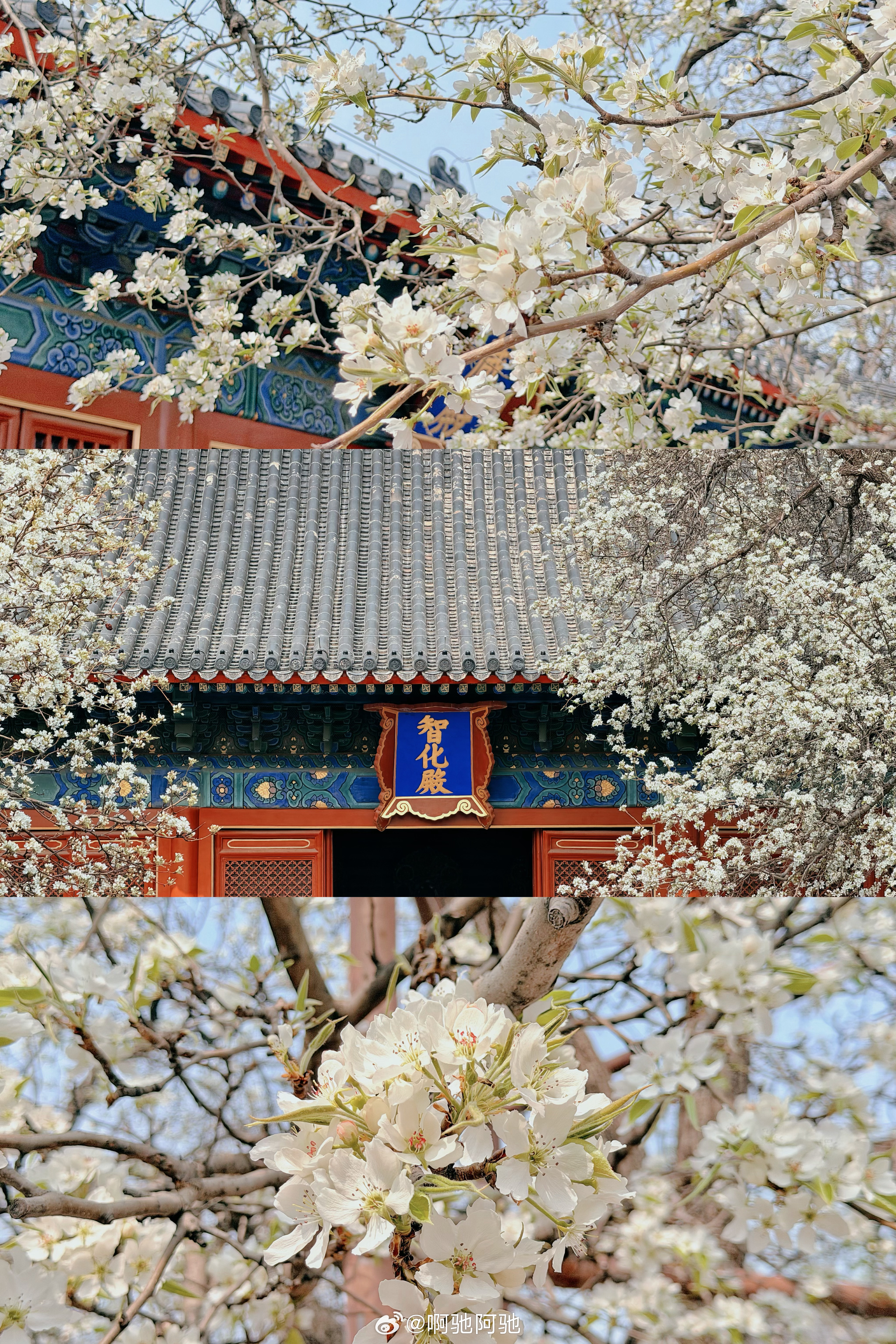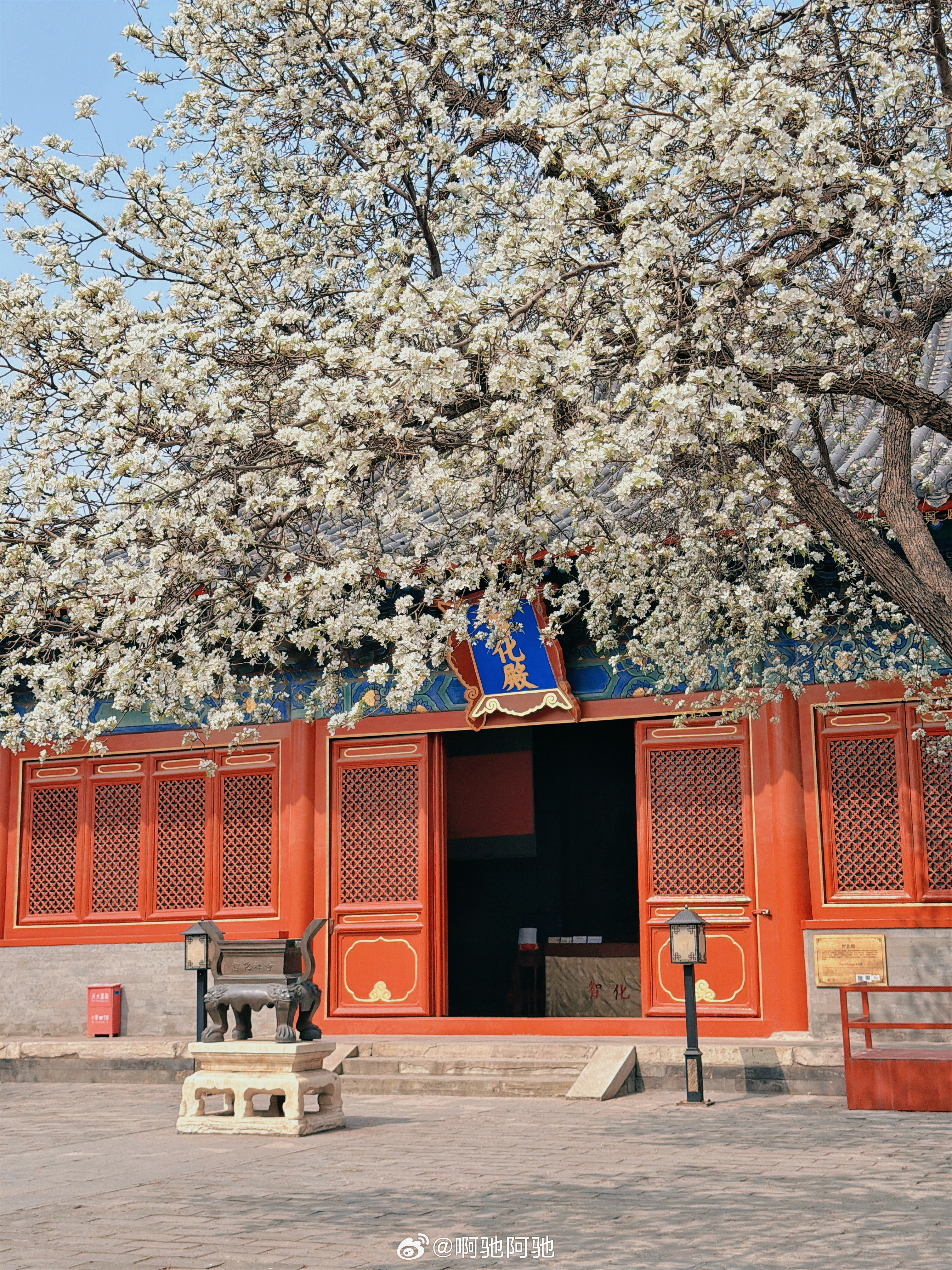 收集北京的春天🌸智化寺的梨花开了一直听闻智化寺的梨花很美,今天凑巧在附近就去看了下,已经有两颗梨树是盛开状态,估计再过一周就是梨花全盛期了🌸今天已经很美,游客也不多,可以安静的坐在树下晒太阳赏花,很舒服~进门处的的紫丁香也开始开花了,估计也是下周会盛开吧,也很漂亮不知不觉就集齐了北京的春夏秋冬,也是很美好的北漂生活了~啊驰的北京生活碎片春天的浪漫是花花给的 北京·智化寺