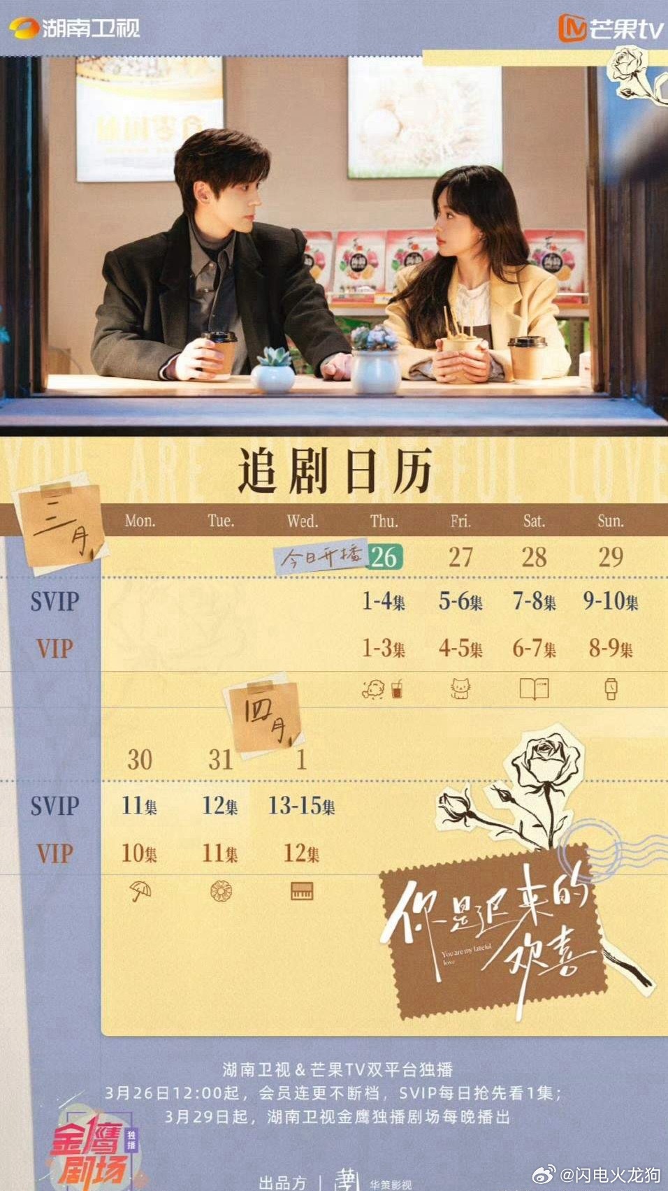 魏哲鸣、郑合惠子现偶《你是迟来的欢喜》追剧日历,今天(3.26)芒果开播。