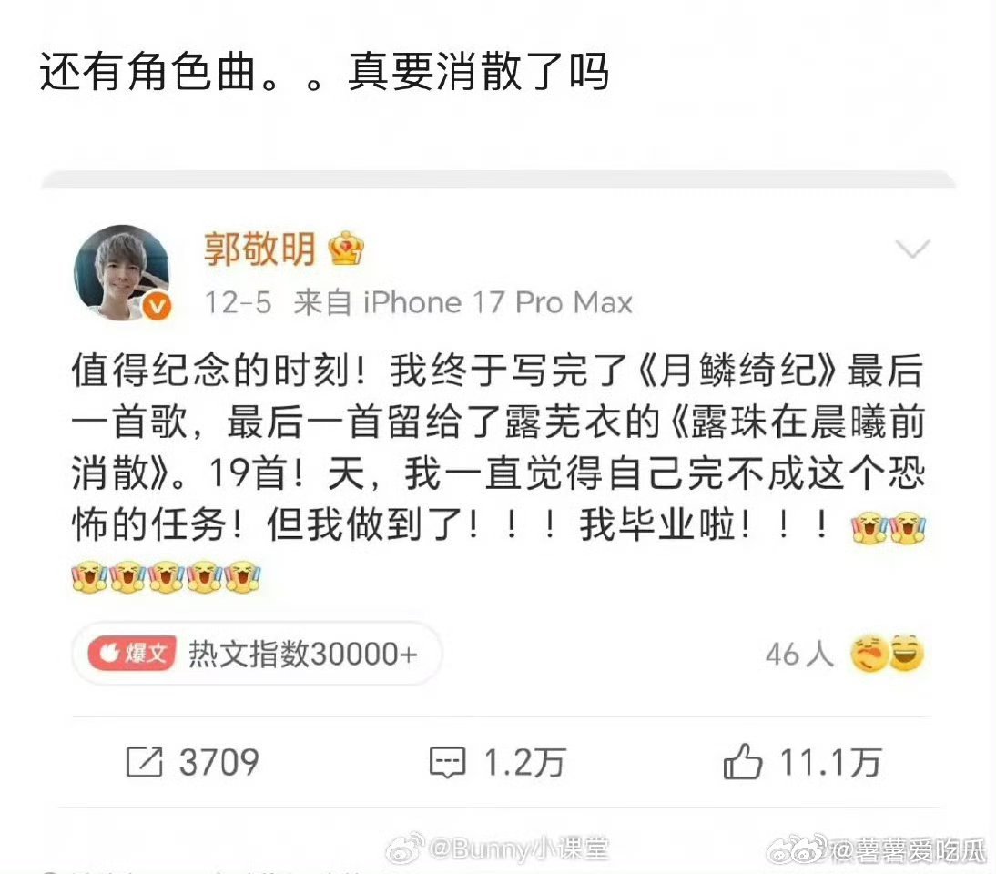 郭敬明需要避谶郭敬明新笔名陆觉谐音路绝,新剧角色曲叫《露珠在晨曦前消散》,《月鳞绮纪》定档遥遥无期,玄学buff叠满了,郭导真该好好避避谶了😮💨