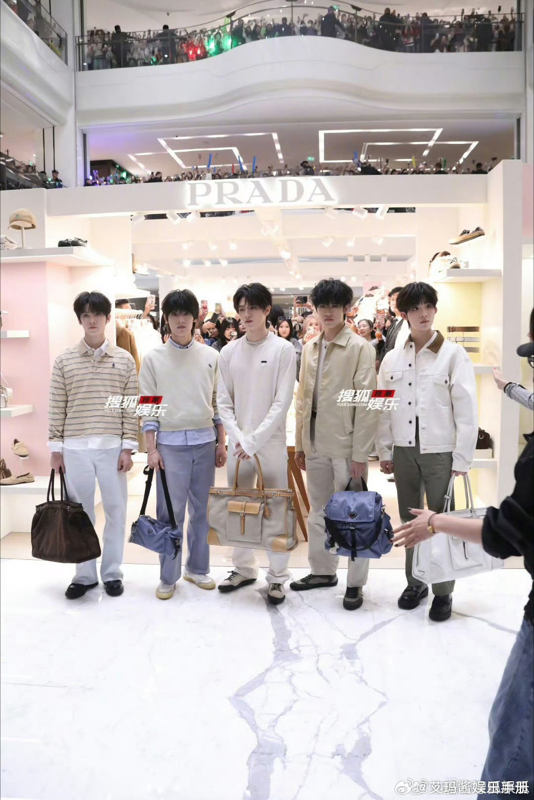 TOP登陆少年朱志鑫、张泽禹、张极、左航、苏新皓亮相北京PRADA快闪活动生图,