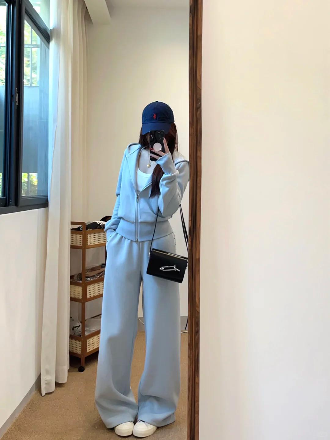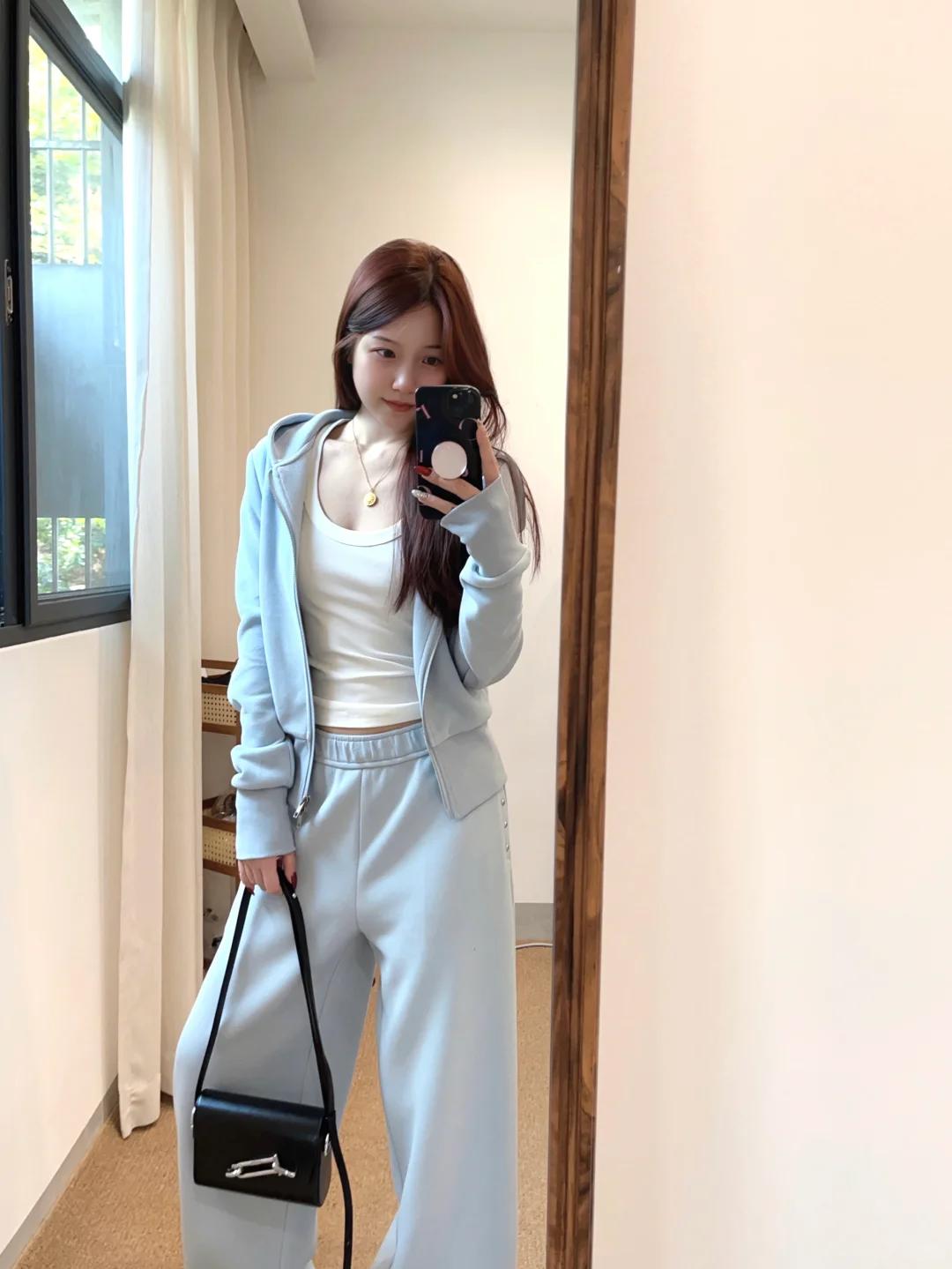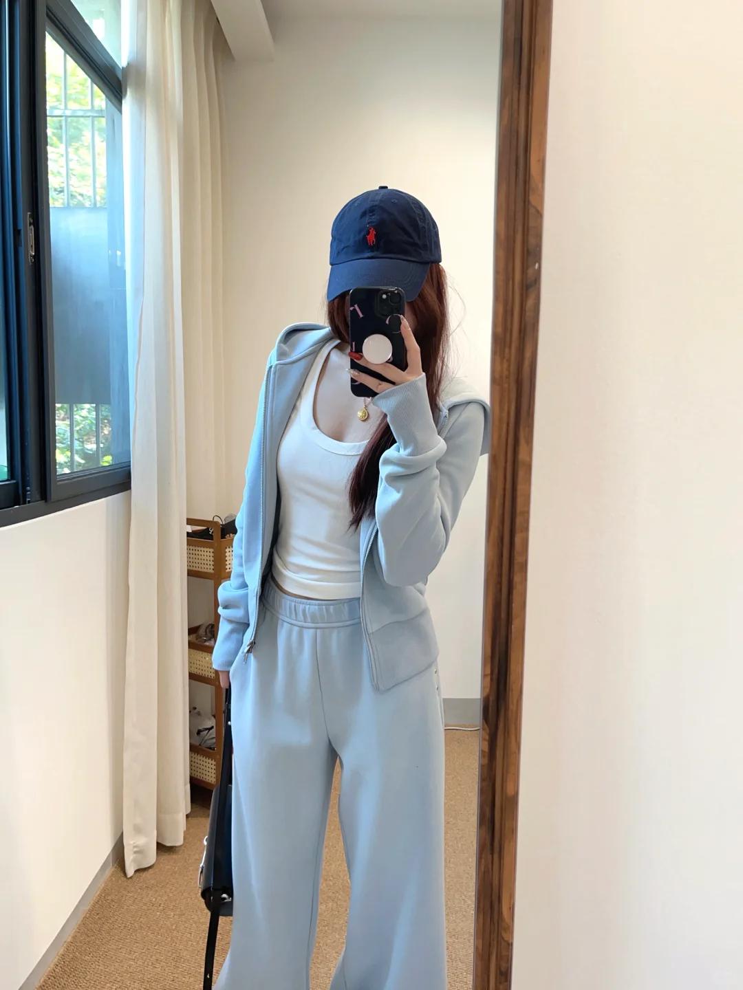 春季懒人运动风穿搭✨舒服又出片 谁懂啊!灰色运动套装真的是春日穿搭天花板👌 懒人直接一套出门完全不用费脑搭配,灰色卫衣 + 卫裤宽松又显瘦,对身材包容度拉满~内搭一件白色露脐小吊带,微微露腰小心机,瞬间打破运动装的沉闷,甜酷感直接拉满! 搭配经典白色板鞋,清爽又百搭,再戴上深蓝色棒球帽,氛围感瞬间拿捏🧢 整体简简单单的运动休闲风,舒服自在还超上镜,春季日常出街、散步、约会都超合适,慵懒又时髦,温柔又元气,姐妹们快抄作业!