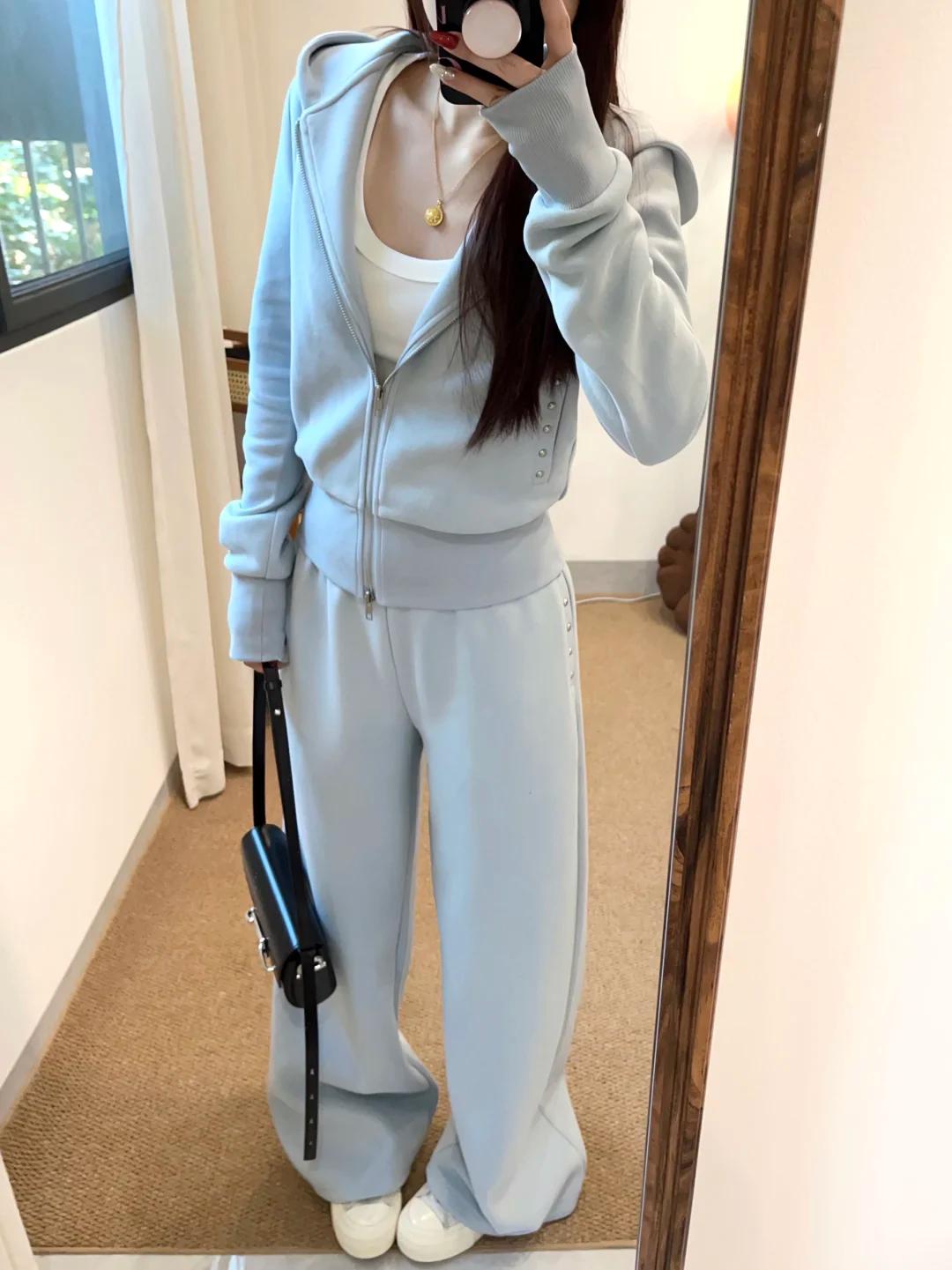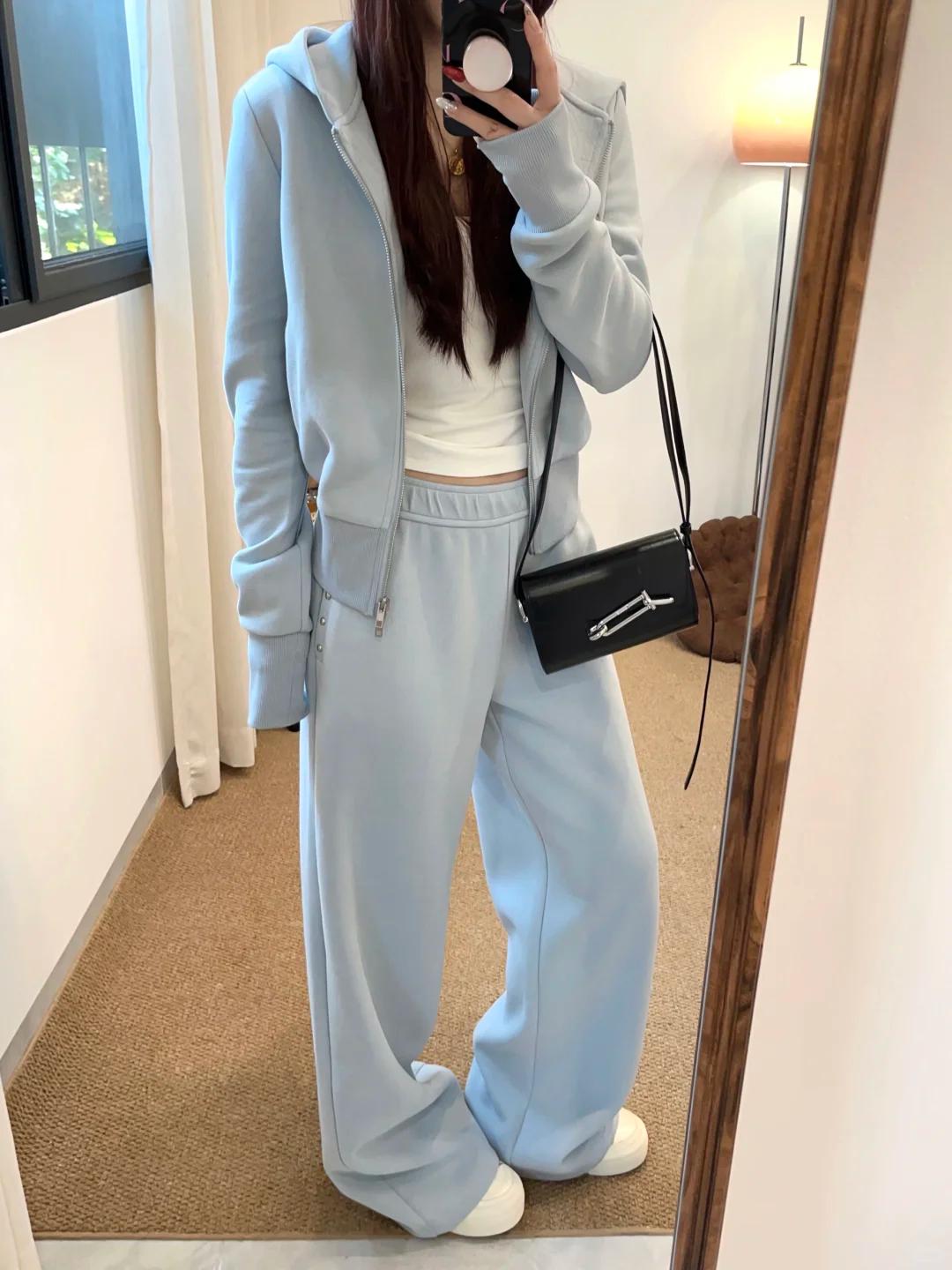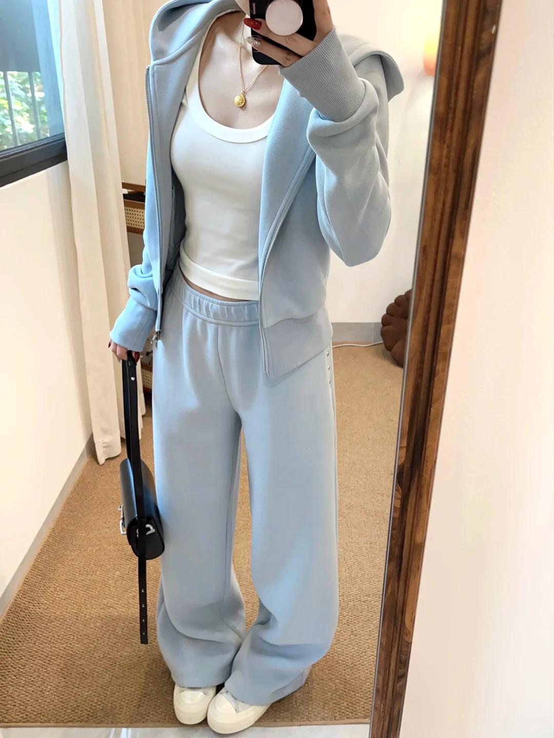 春季懒人运动风穿搭✨舒服又出片 谁懂啊!灰色运动套装真的是春日穿搭天花板👌 懒人直接一套出门完全不用费脑搭配,灰色卫衣 + 卫裤宽松又显瘦,对身材包容度拉满~内搭一件白色露脐小吊带,微微露腰小心机,瞬间打破运动装的沉闷,甜酷感直接拉满! 搭配经典白色板鞋,清爽又百搭,再戴上深蓝色棒球帽,氛围感瞬间拿捏🧢 整体简简单单的运动休闲风,舒服自在还超上镜,春季日常出街、散步、约会都超合适,慵懒又时髦,温柔又元气,姐妹们快抄作业!