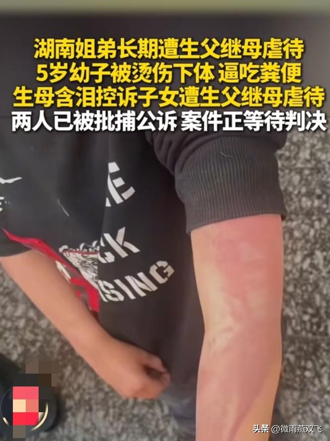 湖南武冈虐待两姐弟的继母,这个女人不简单。 她的手段之残忍,令人发指,可以说,毫无人性底线可言。 武冈公安局出示的、被虐待男孩元宝的伤情鉴定单, 任凭哪个看了不心疼落泪,哪个不感到愤怒。 元宝全身上下留下的淤伤痕迹高达47%,这是什么概念? 这说明,元宝不是偶尔被殴打一次或者两次, 而是长期遭受殴打,暴力伤害对年幼的他来说,已成家常便饭。 殴打的程度,也不是继母用巴掌打人那么简单, 而是使用了工具:扳手、皮带、拖把杆等,那下手是相当的狠毒。 更令人发指的是,这个继母还用热水烫伤元宝下体。 70度的热水啊。 我们冬天洗澡,热水器调到51度,都需要调混水才能正常使用, 不然单一热水模式,就会烫得皮肤发红,常人根本无法忍受。 而这个女人,身为烧伤科的一名护士, 常年接触烧烫伤患者,更加知道此类伤害带来的剧痛与折磨。 她比任何人都清楚,70度热水烫人会造成多么严重的伤害,会给孩子带来怎样撕心裂肺的痛苦。 可是,她明知伤害之痛,却依然毫无怜悯地,把痛苦施加在年幼孩子身上。 这样泯灭人性的行为,说她毫无人伦底线,一点都不夸张。 在医院,她身着医护服装,是不知实情人眼中的“白衣天使”, 回到家中,却化身折磨元宝姐弟的施暴者。 更让人愤怒的是,她除了手段残忍之外,某些行为更是没有人性底线。 据说,有一次,她把当年才5岁的元宝关在房间内不许外出, 无论元宝如何哭求,连正常上厕所的需求都不答应。 最后,元宝憋不住,无奈在房间垃圾桶内排便。 没想到,元宝的这个行为彻底激怒了她, 让她做出了让人难以置信的举动。 变态的她,竟然逼迫元宝食用垃圾桶内的排泄物。 说实话,继母这样的恶行,如果不是多家权威媒体报道,真的难以相信会发生在现实生活中。 元宝的亲妈说,继母把元宝当gou养。 可我觉得,元宝的遭遇一点都比不上宠物狗。 大家想想看,如今哪家养狗子,不是悉心照料、百般疼爱,又是抱又是亲的, 狗子的吃食,都是主人精心准备的狗粮,再差都是汤拌米饭,没有谁会让狗子吃排泄物。 可这个女人,却对一个可怜的孩子,做出如此泯灭人性的事。 更可恨的是,她不仅对孩子进行身体上的虐待,还试图从心理上摧残孩子。 这也就能解释清楚,她为何在虐待元宝时,还不断进行恶毒的辱骂诅咒。 元宝亲妈说,那个继母诅咒元宝出车huo,说什么可以让元宝父亲拿到一笔qian。 她们家住在25楼,她还教唆孩子干傻事。 如此等等,可见,这个女人心思彻底扭曲。 她妄想通过精神打压、言语诱导,让孩子做出极端行为, 从而达到她逃避责任、谋取不当利益的目的,真的太可怕了。 这样的女人,她不仅不配为人继母,更丧失了基本的做人良知。 目前,检察院以虐待罪和故意伤害罪依法提起公诉,涉案女子已被批准逮捕。 相信法律会公平公正裁决,让施暴者承担应有的惩罚。 最后,我想说的是,作为一个继母,即便无法做到将继子女视如己出, 即便做不到全心关爱,也绝不能无视孩子的人格,肆意伤害。 没有血缘、不是亲生,绝不是虐待孩子的借口; 继母这个身份,只是她进入这个家庭的一种表现形式,绝不是她,可以肆意施暴孩子们的挡箭牌。 虐待恶行