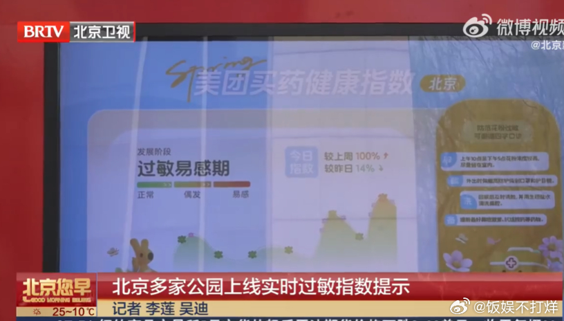北京公园上线实时过敏指数提示北京公园太懂过敏星人了 北京在民生保障上越来越用心,公园通过数字化服务与源头治理双管齐下,切实为过敏星人打造安全舒适的游园环境