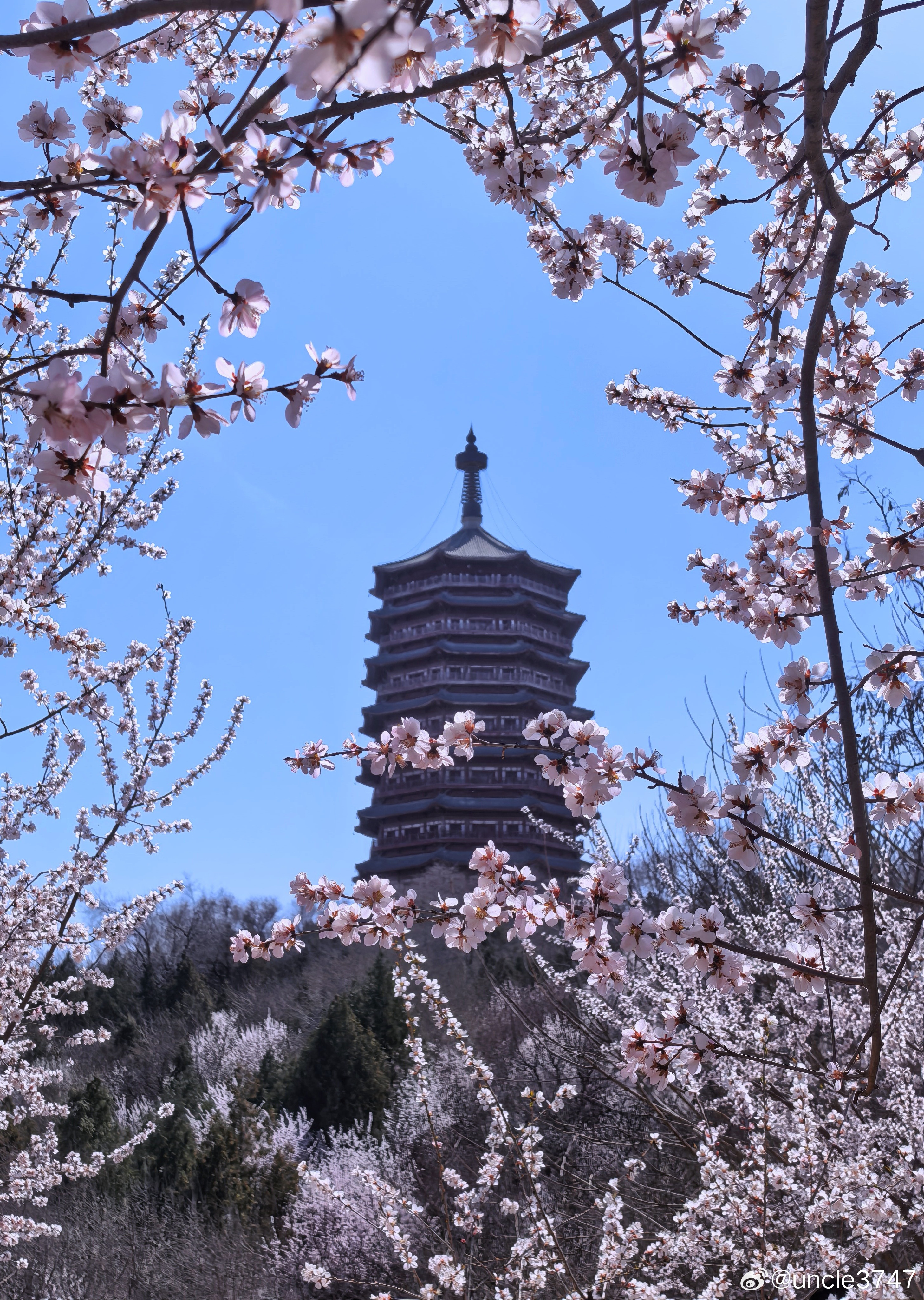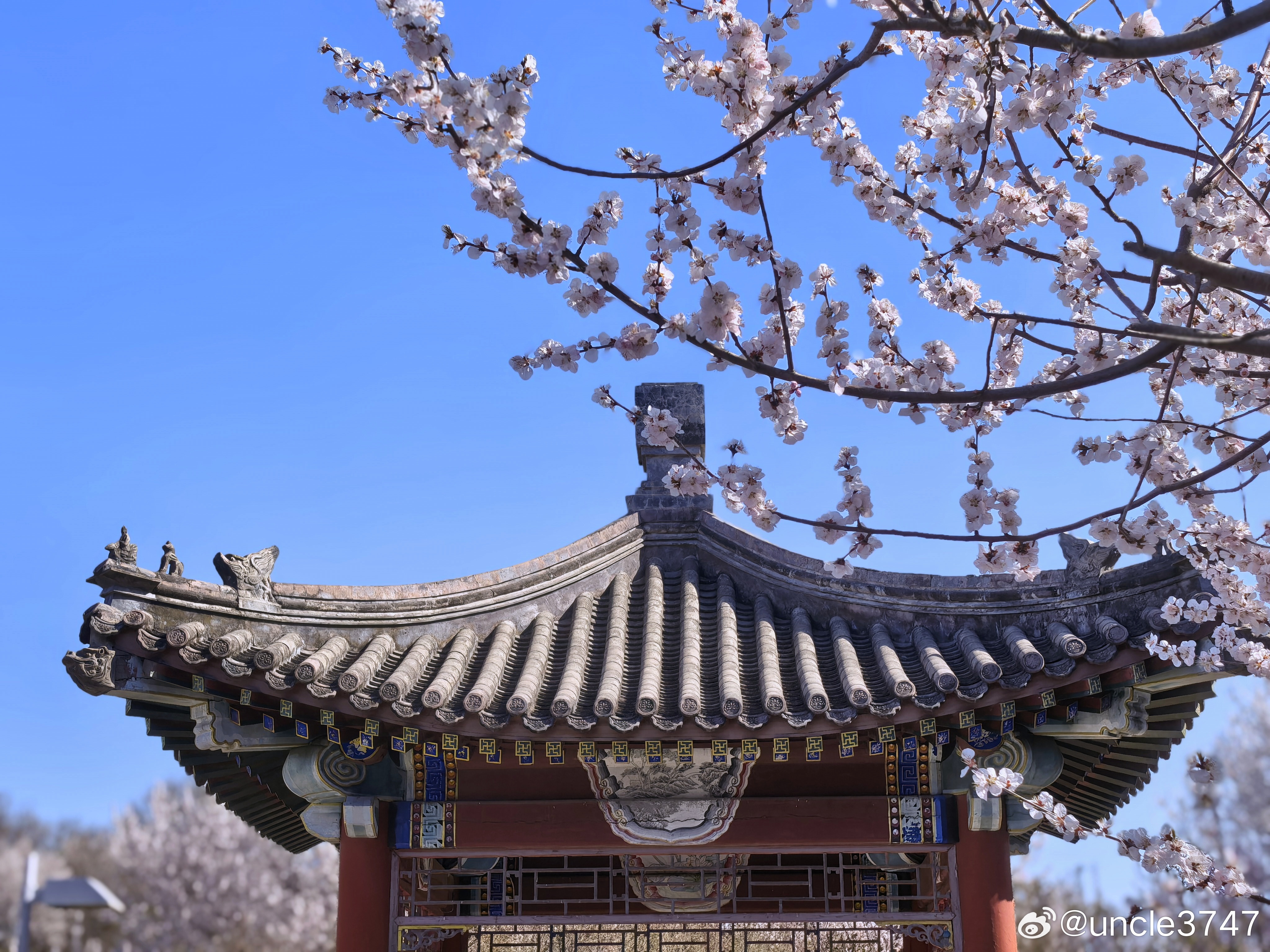 飞檐挑破三月霞,塔影斜分几树花。一阁文章承雨露,满园春色绣京华…园博园的春天如梦似幻摄影