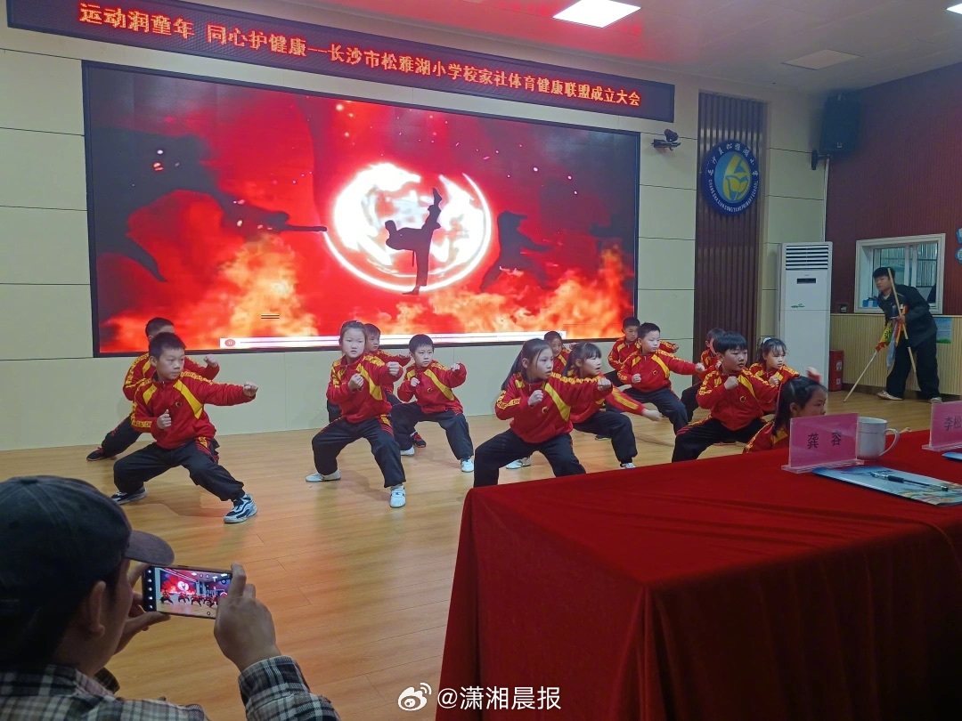 【#长沙一小学成立家校社体育健康联盟#,萌娃武术燃爆全场!校长:健康第一,学体互促】#跟着校长去跑步##潇湘校长跑团#3月25日,长沙松雅湖小学“家校社体育健康联盟”成立大会开场环节,几十余名低年级萌娃带来的武术表演和啦啦操表演瞬间点燃全场,稚嫩的身影或透着不凡英气,或洋溢着蓬勃活力,令在场家长与嘉宾深受震撼。