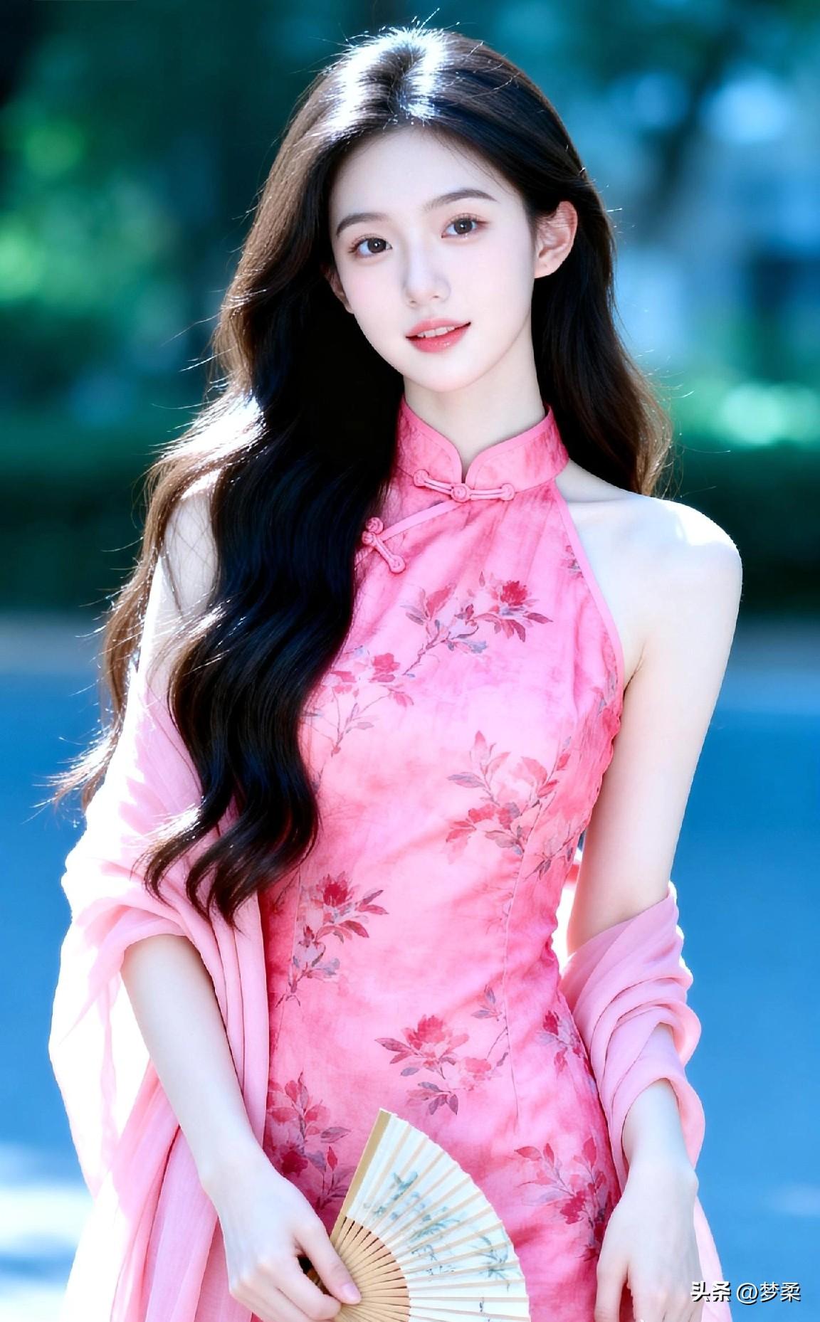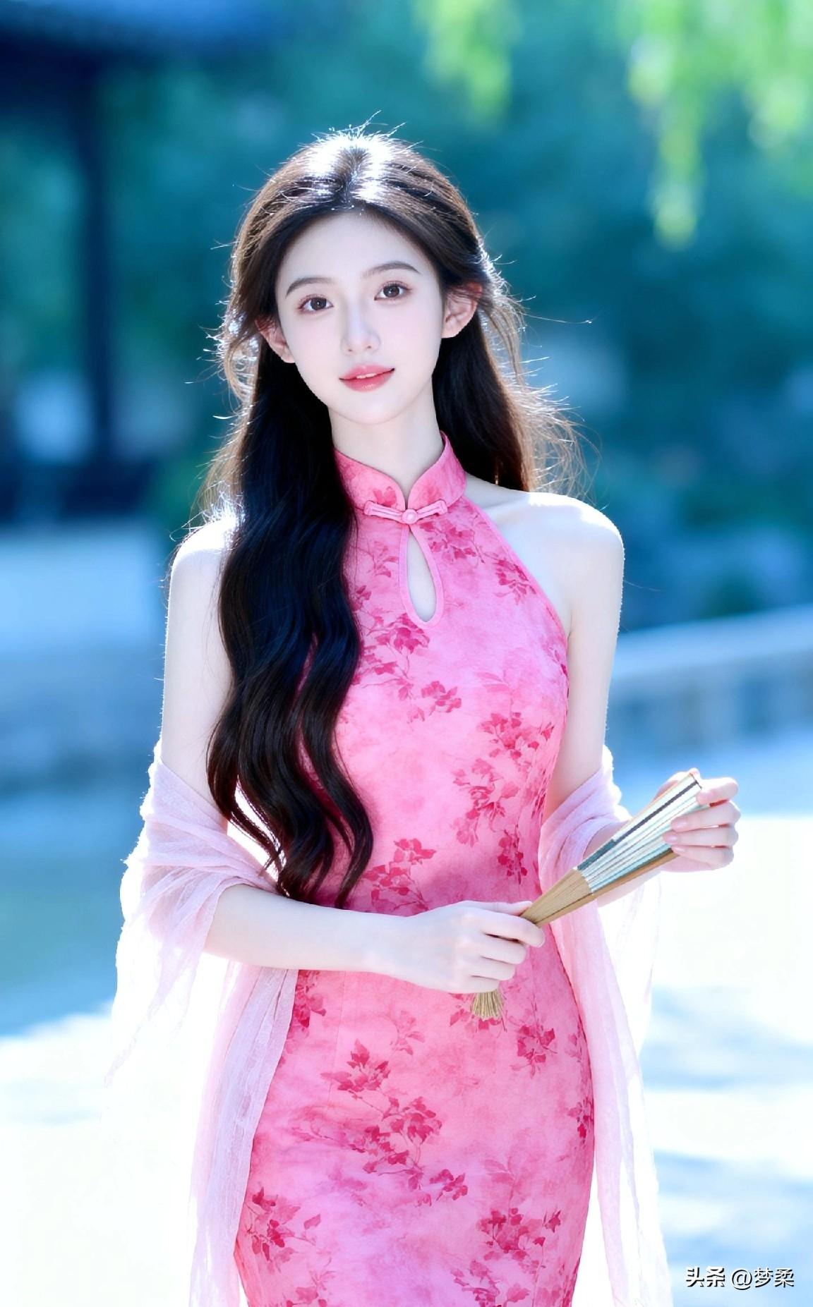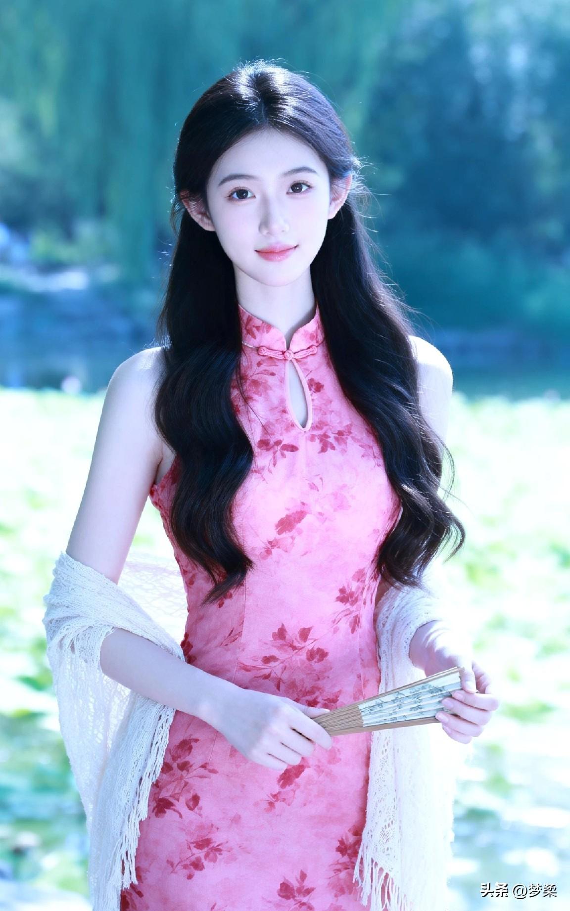 温柔古典的东方美人,粉色的旗袍尽显优雅气质