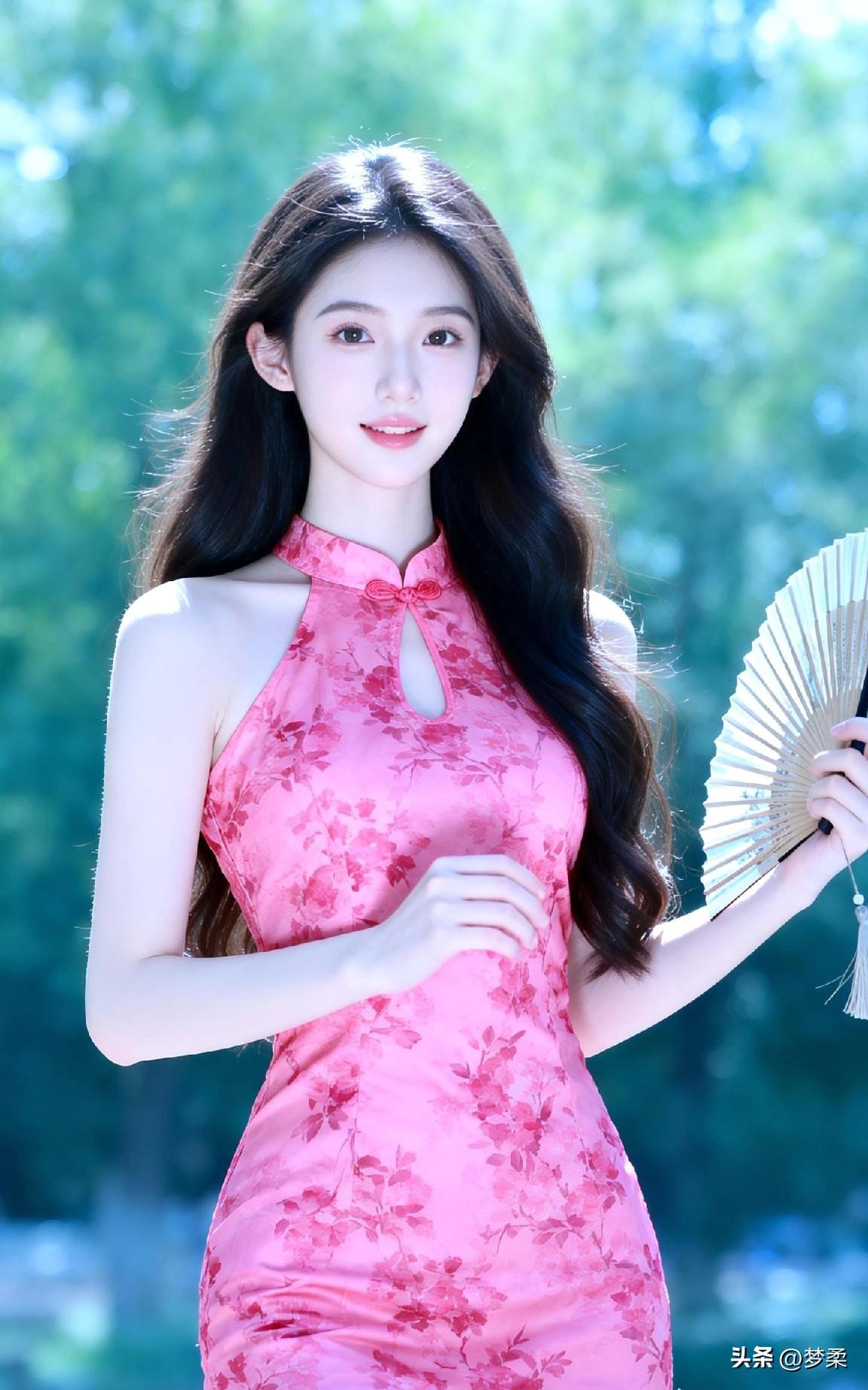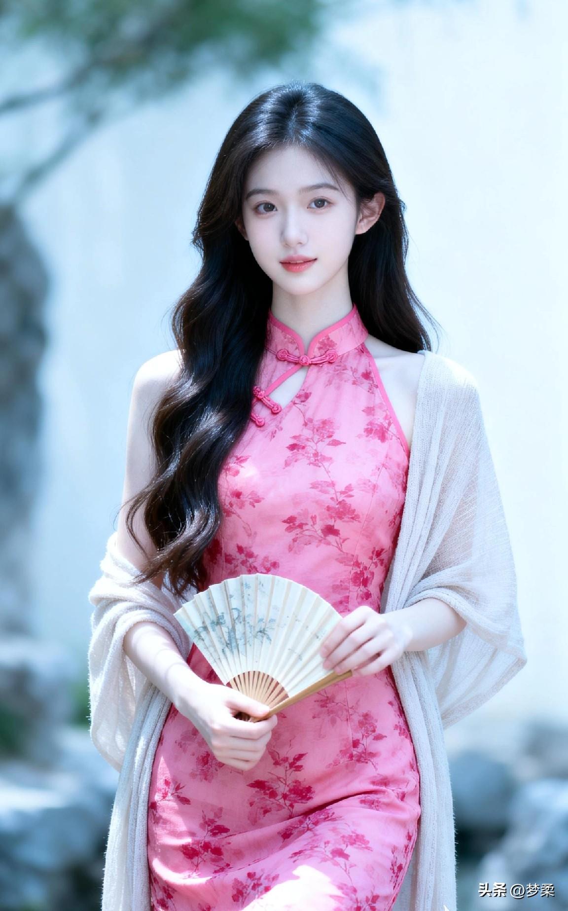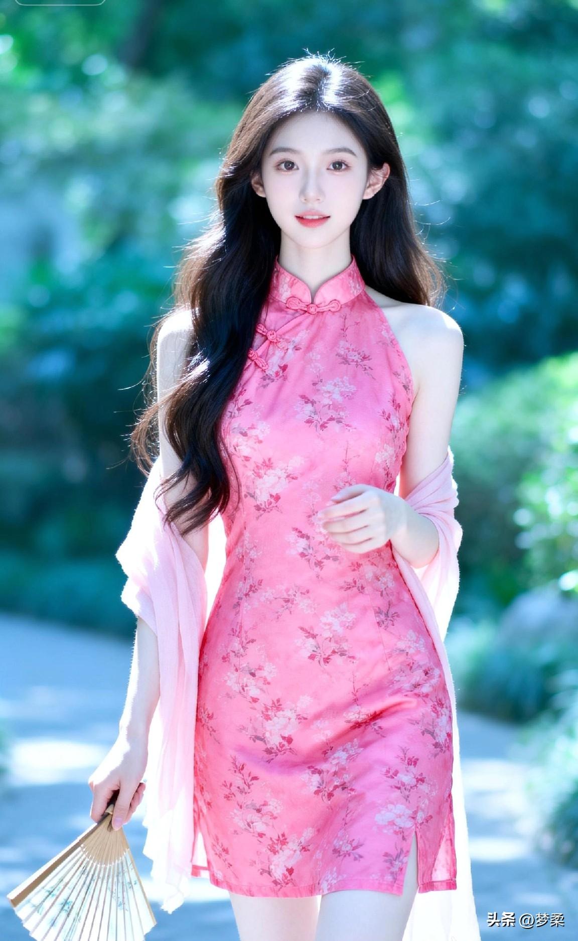 温柔古典的东方美人,粉色的旗袍尽显优雅气质