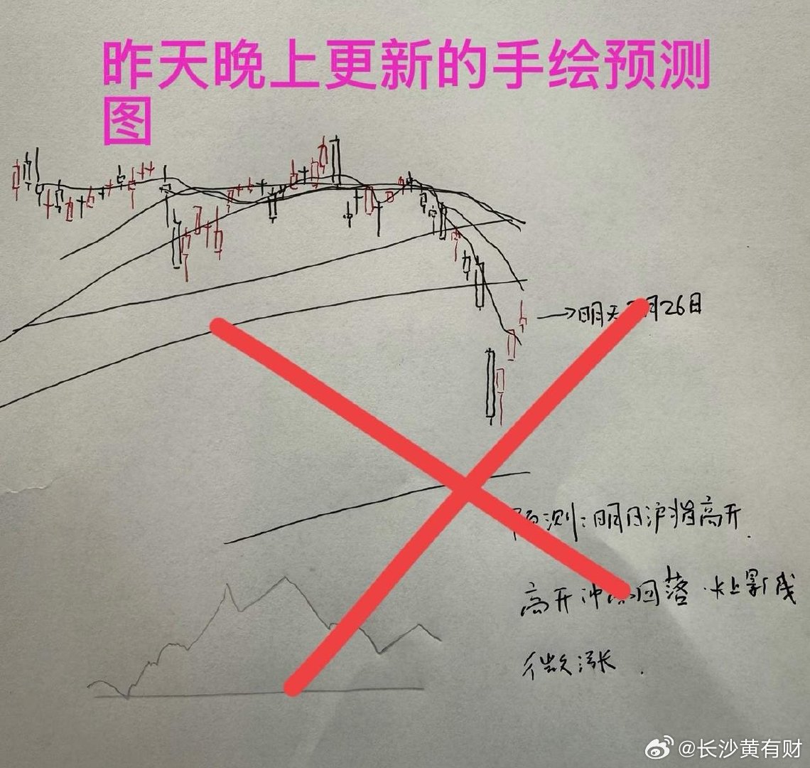 最后大家看一下我昨天更新的关于今天走势的手绘预测图。很遗憾,昨天的预判可以说与市场的实际走势完全相背离了。作为纯技术派的老手,今天这个跟头栽的不小。