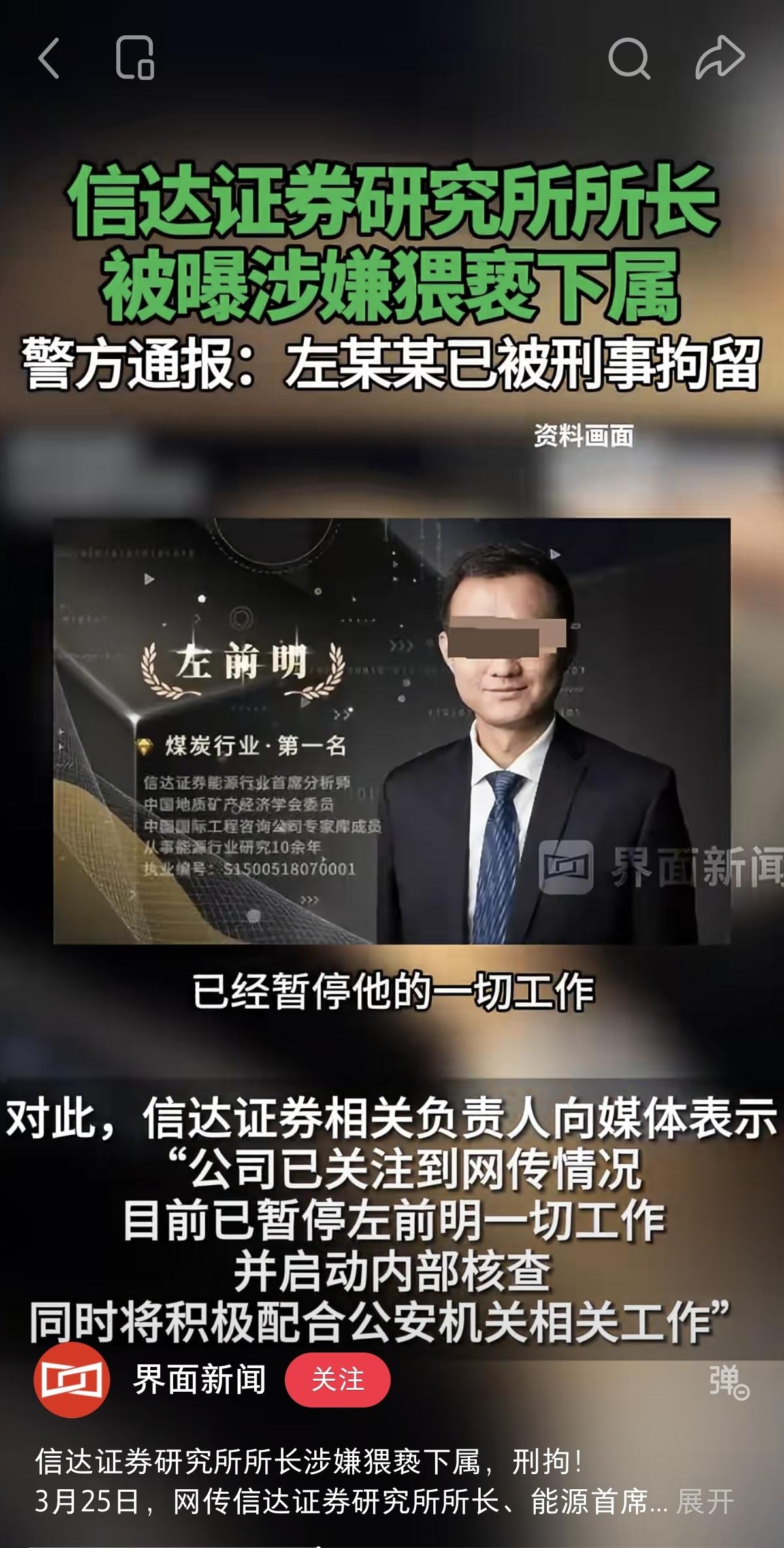 唐禅语举报左所长这件事 她肯定要后悔 为什么这么说,有三大原因: 1、首先,通常在男女关系上,无论是不是男人的问题,人们都要从受害者那里找原因。不管大家承不承认,因为目前社会的惯性逻辑就在那里。 2、举报领导以后,她大概率要离职,现在单位没法待了呀。多少闲言碎语,唾沫星子都要把你淹死,就算一开始,为了平息事情的影响,不会处理你,后面也会慢慢边缘化你的。 3、这件事发酵之后,最可怕的影响是啥,你发现出来很难再找到行业内的工作了。左所长在行业深耕这么多年,多多少少都有点关系网在的。 所以我说,唐禅语多年以后肯定要后悔现在年轻气盛做出的决定。关于这件事,大家怎么看?