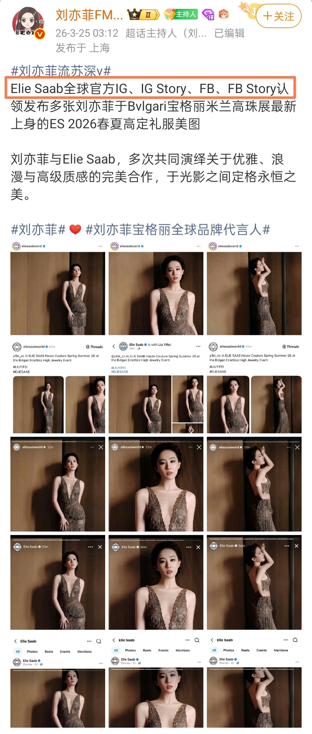 BVLGARI宝格丽高珠发布展刘亦菲演绎的两套新季高定系列裙装均被品牌认领!「Elie Saab、Miss Sohee」