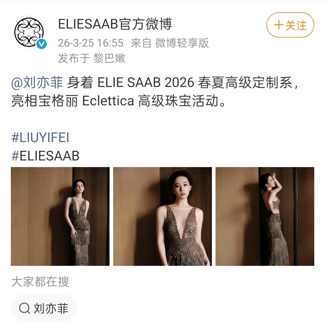 盘点刘亦菲与顶级高定ES的合作想穿就能穿到 Elie Saab 最重工的设计或压