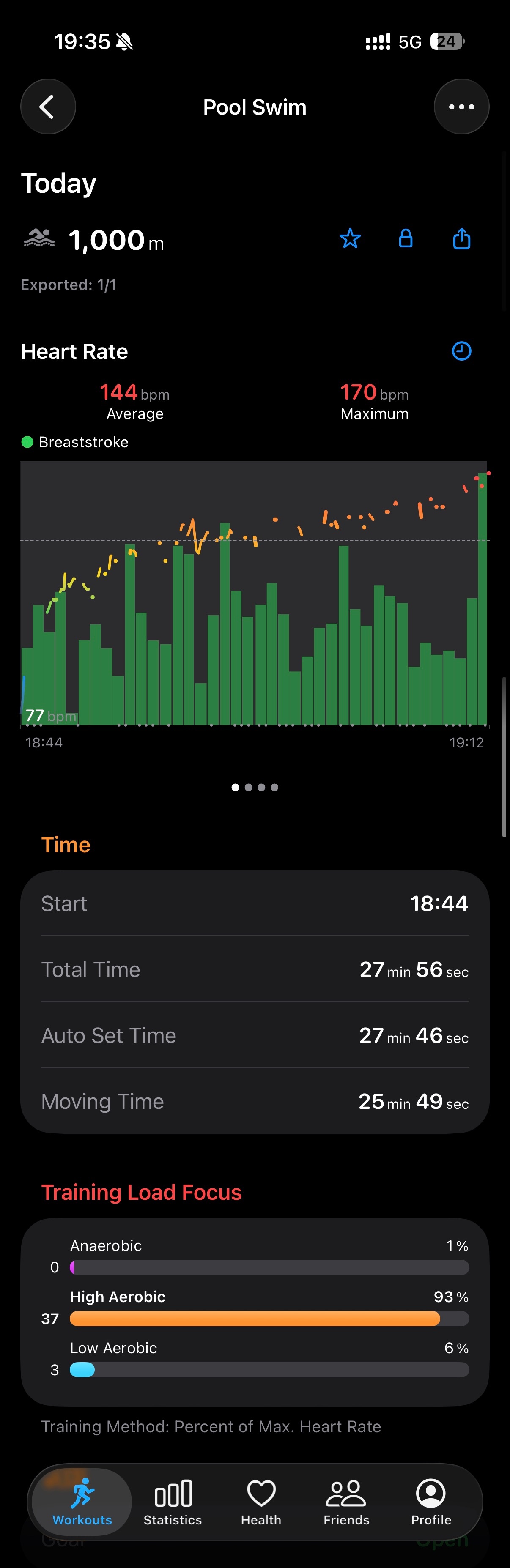 游了1000M,瓶颈在28分钟。最后100米打算冲一下,结果小腿抽筋了
