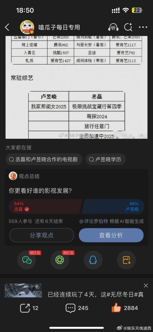 丞磊 卢昱晓 丞磊和卢昱晓的投票结果我感觉明明卢昱晓营销力度挺大的啊看来丞磊这几部都是有效播剧了~