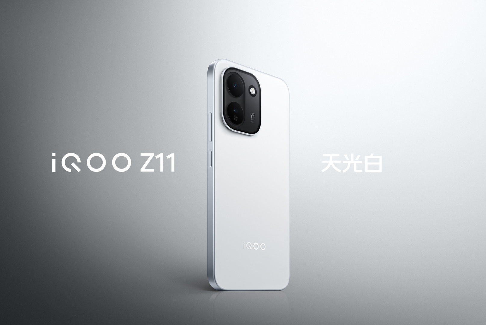 iQOO Z11 三款配色,「沧浪浮光」「天光白」、「极夜黑」。外观采用悬浮舷窗设计、大R角设计和视觉四等边设计