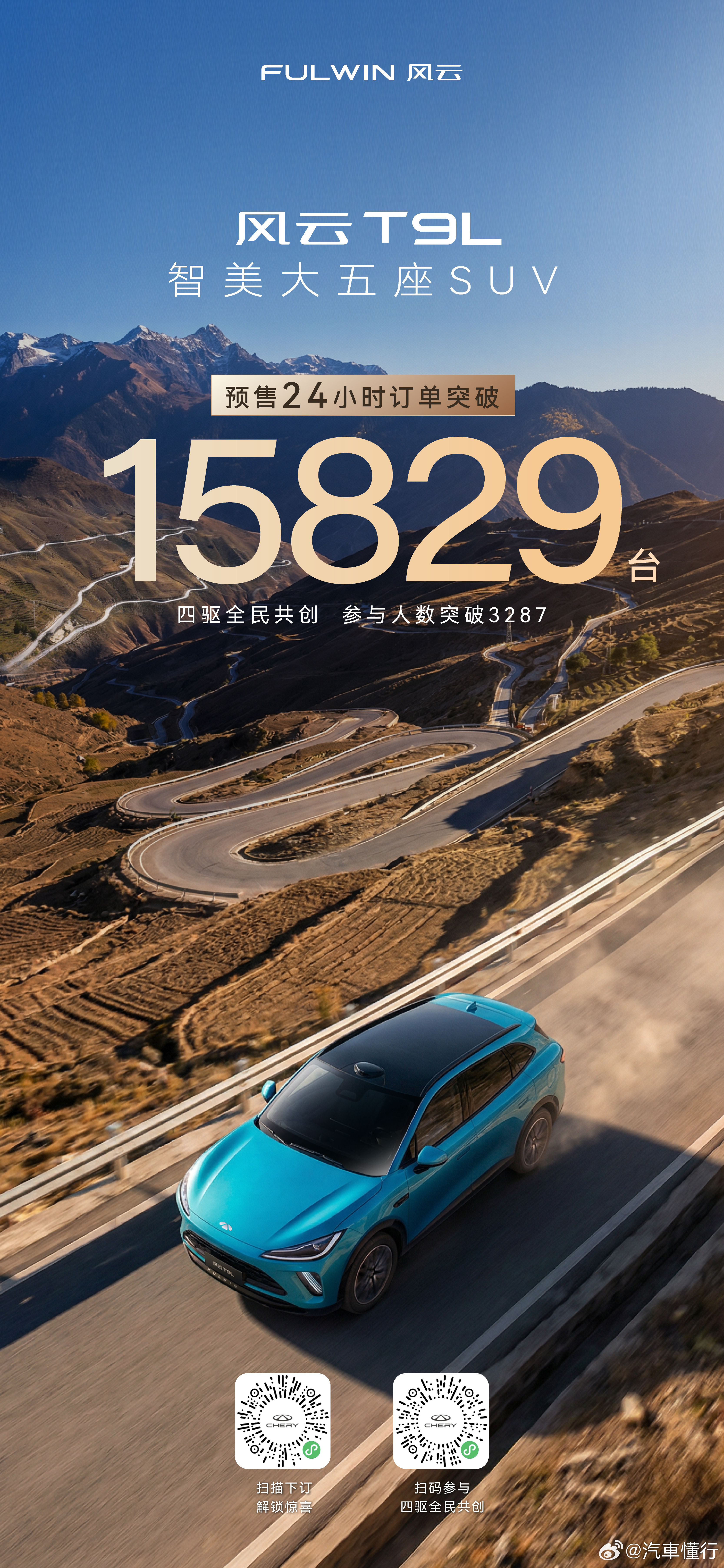 感恩每一份信任风云T9L预售24小时订单突破15829台期待我们相见那一天不会太(T)久(9)了(L)奇瑞风云之夜T9L正式预售