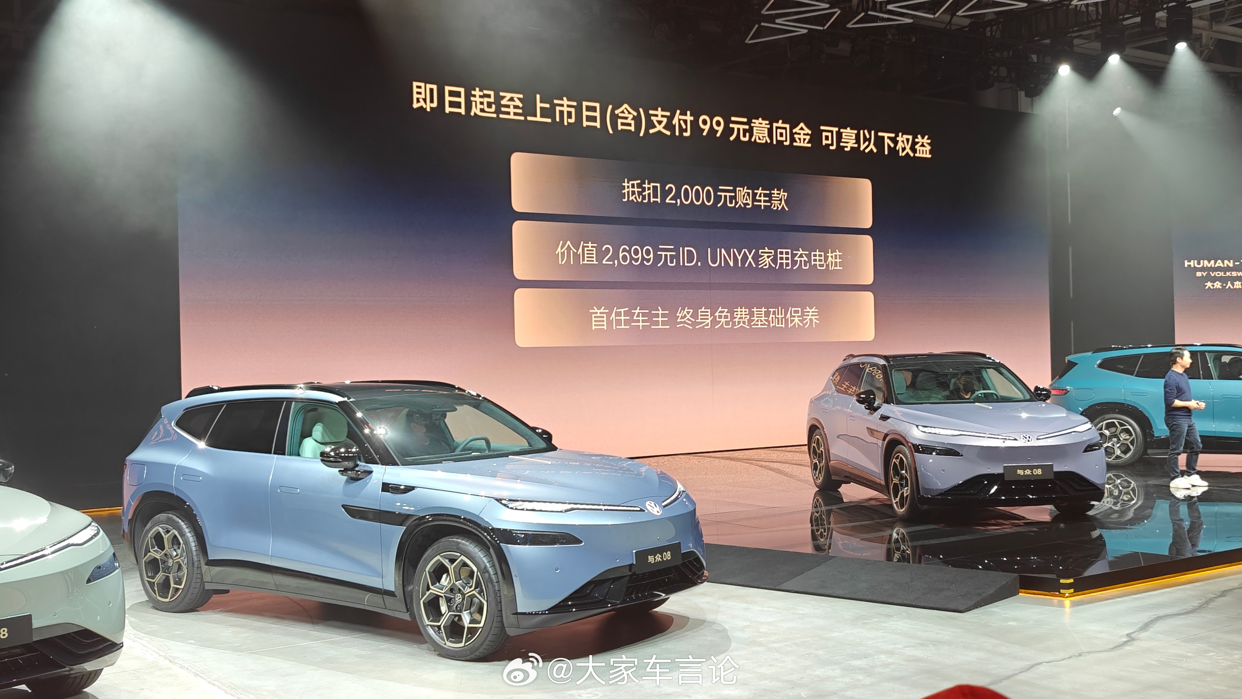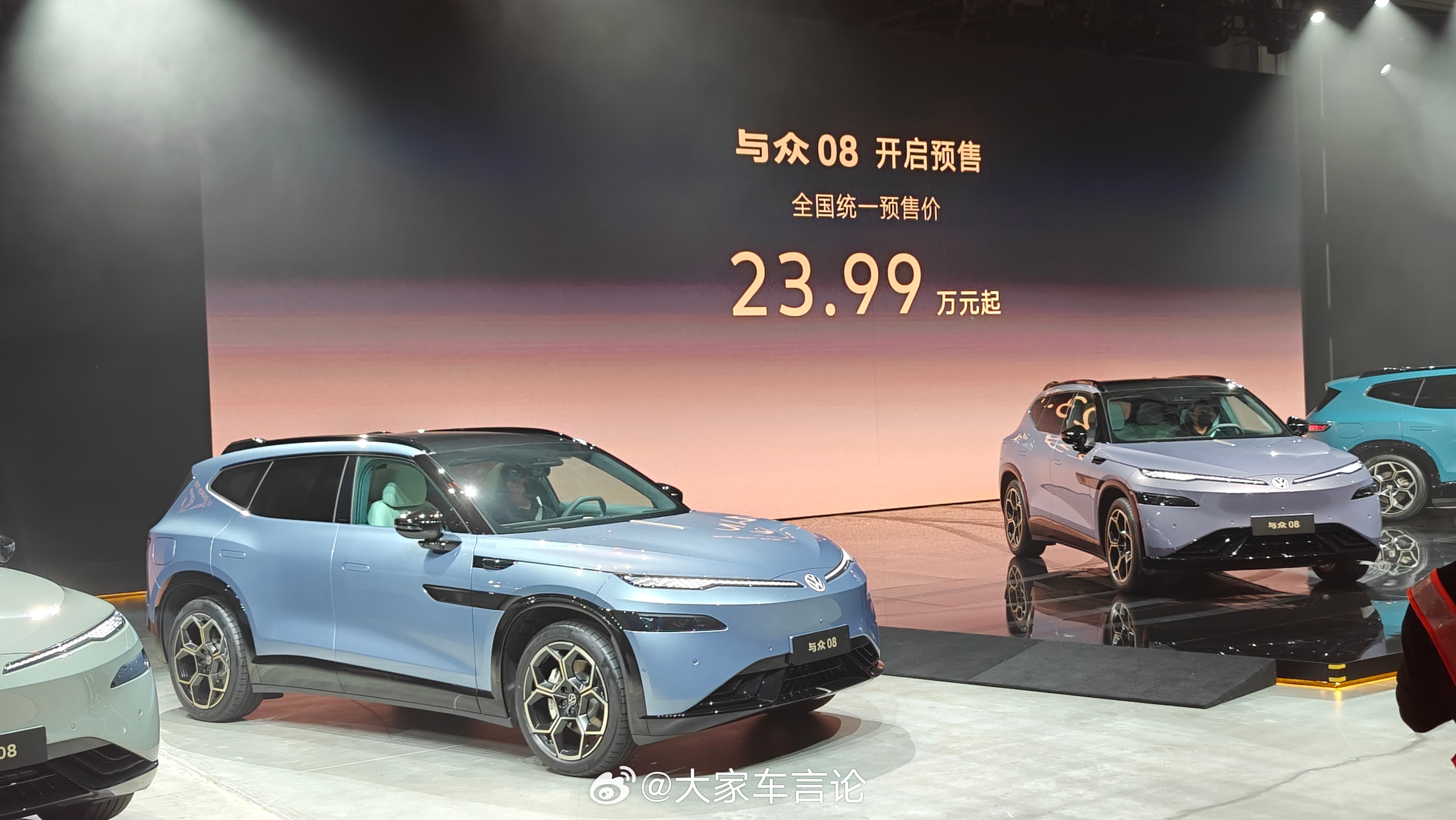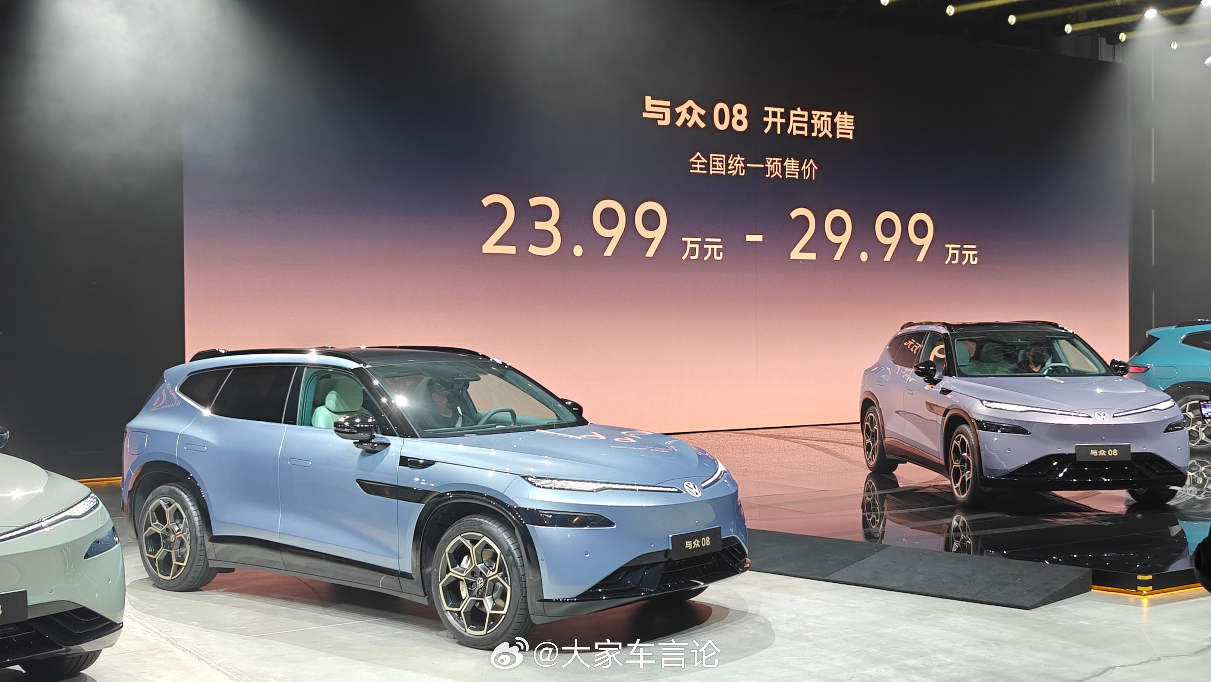 金标大众家族旗舰与众08公布预售价23.99万起。定位中大型SUV,尺寸5000mm x 1954mm x 1688mm,轴距3030mm。作为大众与小鹏合作的首款车型,搭载基于VLA端到端大模型的高阶L2辅助驾驶,双图灵芯片1500 TOPS算力,可实现“车位到车位”等全场景辅助驾驶能力;800V架构,全系标配宁德时代电池,CLTC最高续航达730公里,5分钟可补能达150公里;在舒适配置方面,前排座椅加热通风按摩、后排靠背角度可调/座椅加热、智能调光天幕、可选装的6.7L车载冰箱、智能车载香氛等。