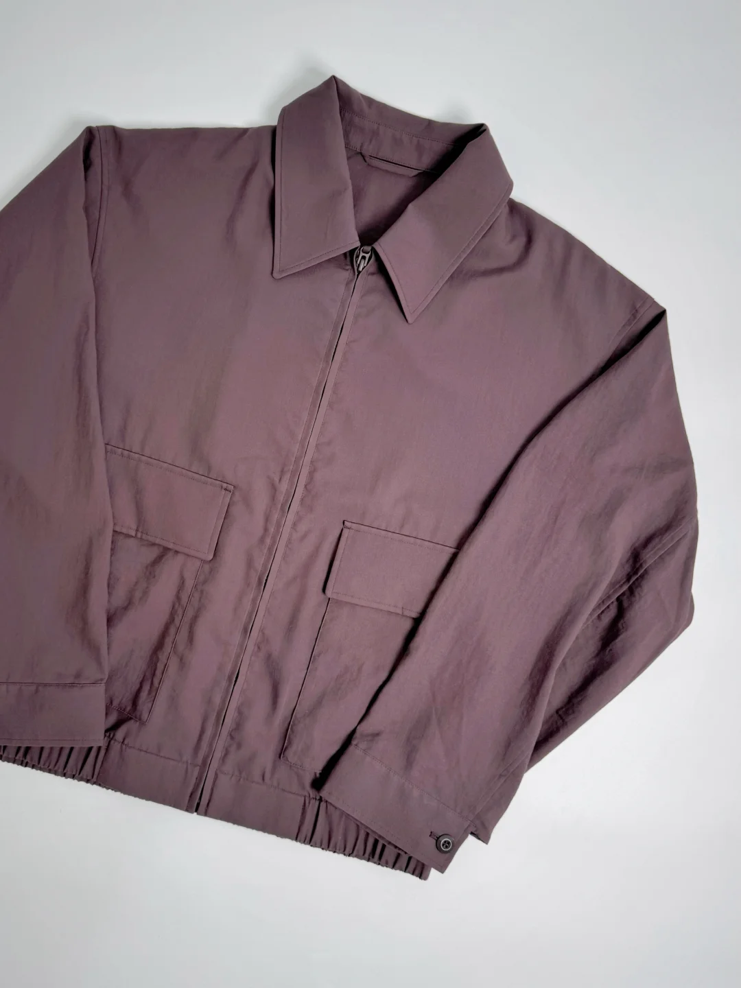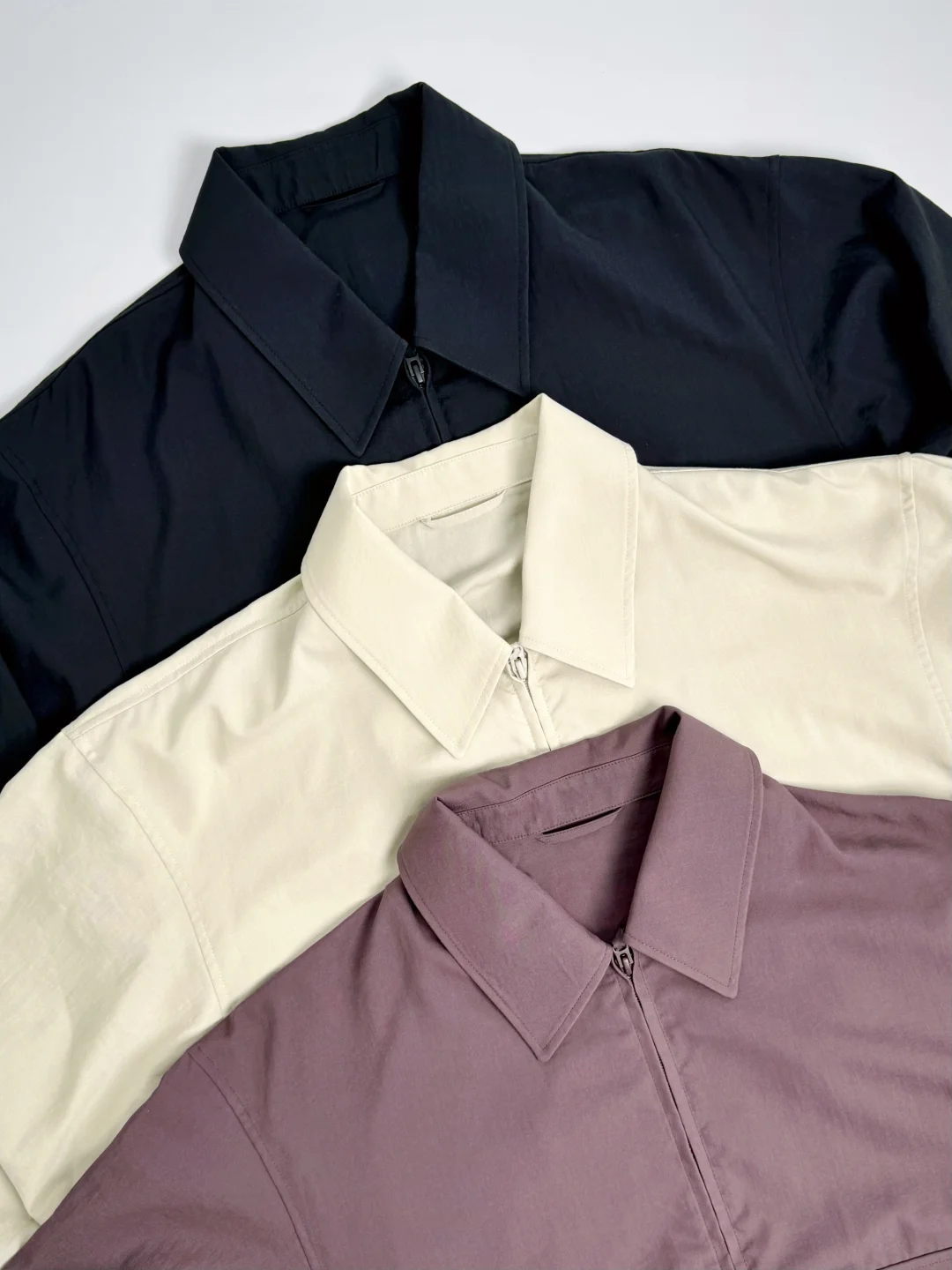 👔短茄克lookbook就一眼相中,紫罗兰略带高级感,实物是暗紫色,但是但是但是非常薄,像一件披着外套形状的衬衫
