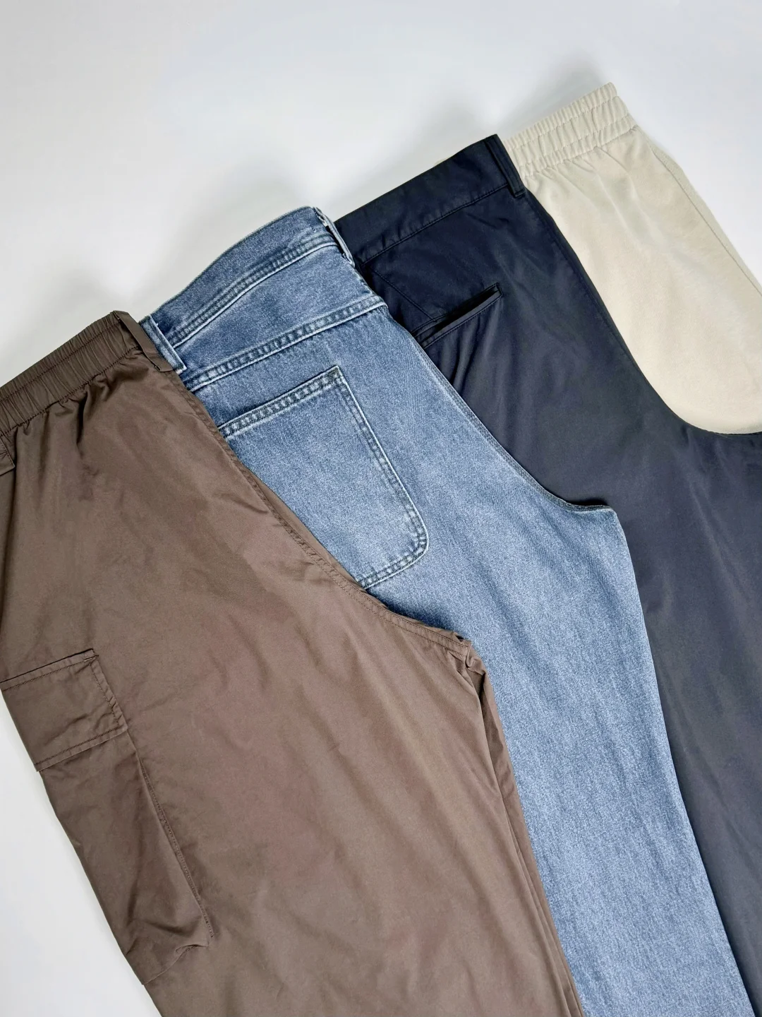 👖四条裤子都还不错,配色&尺码参考放在下面,宽松直筒的版型,工装裤跟运动裤也是薄款,自带抽绳,搭配不同鞋款时方便变换裤脚