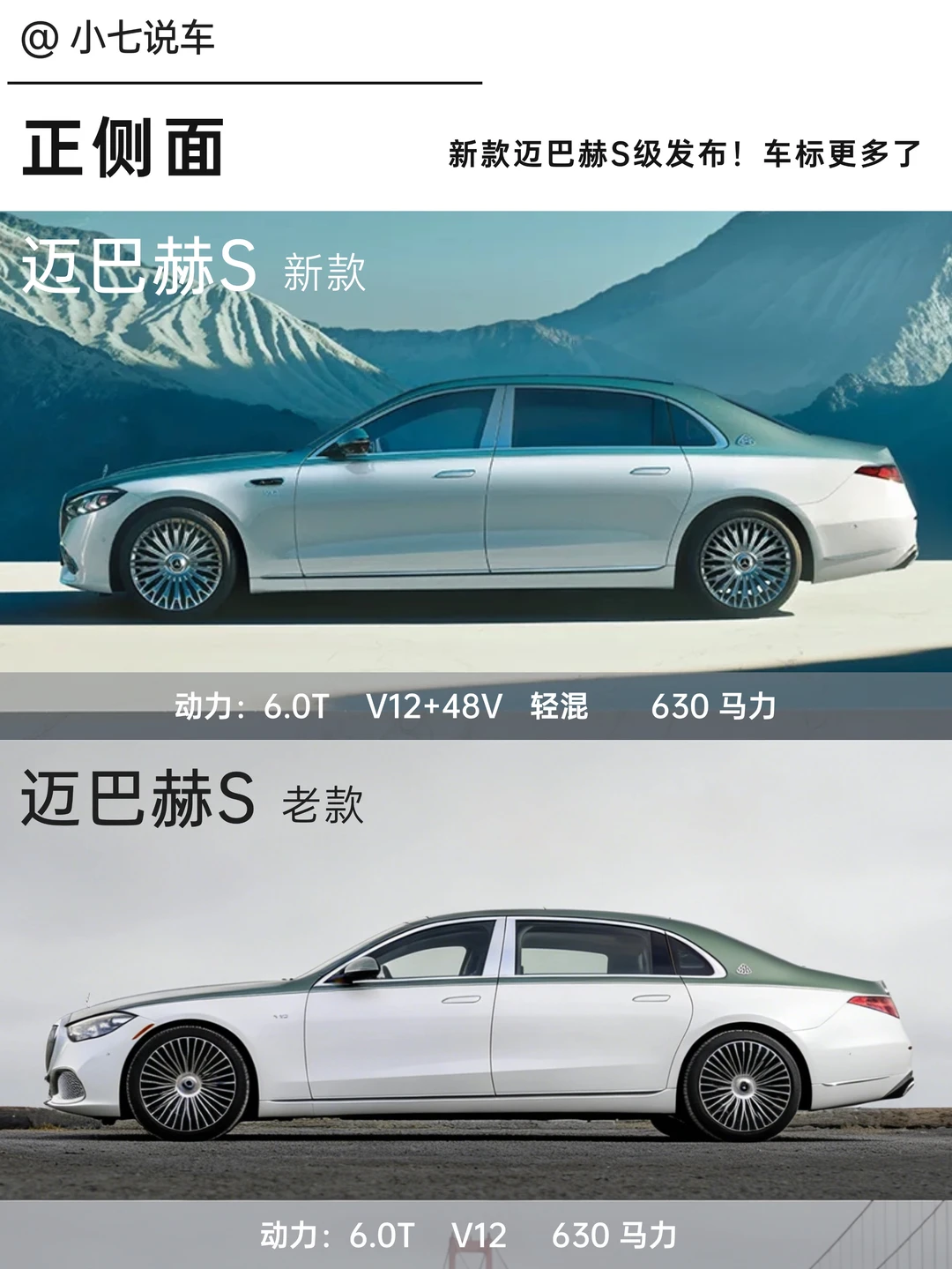 🚗外观上,新款优化了前脸格栅与大灯,加入星芒灯带和数字大灯,点亮仪式感更强,轮毂与外观饰件也有新样式,气场更精致。🔆内饰座舱科技感更强,屏幕布局与车机系统更新,交互更流畅;后排舒适性配置也进一步优化;👌🏻智能驾驶方面,新款搭载更完善的领航辅助与泊车功能,长车身在市区开也更灵活;✔️动力提供V12、V8、六缸版本可选,还针对平顺性和油耗做了微调