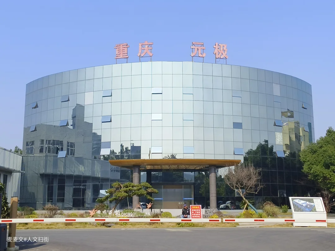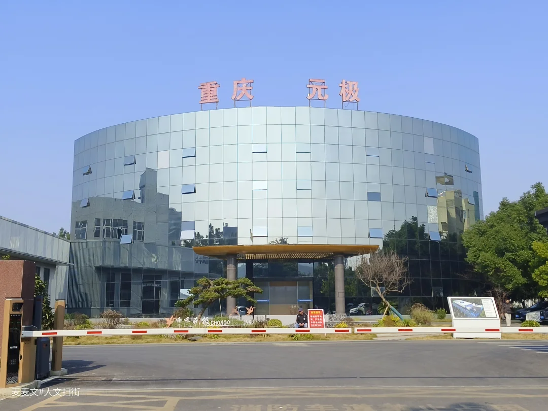 一旁的重庆元极则是通体银灰的圆形玻璃建筑,像一块巨大镜面魔方,流畅曲线反射着蓝天绿树,科技感拉满,与天工楼的硬朗线条形成绝妙视觉对话。