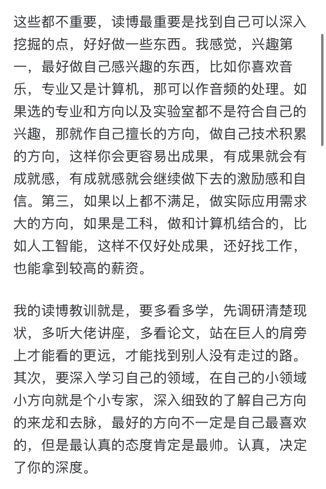 祝你优雅快乐地享受自己的读博生活,多看看世界的美好,多深入感受每个学科的发展逻辑和它独特的美好。至于意义,就是能够用时间去雕刻而且又能经得起时间检验的东西吧,我们努力追寻自己梦想,努力地前进,这本身就是意义,也是最好的开始。至于最大的意义就是能够找到属于自己的路,找到热爱的事,并不畏艰险,一路向前,不被困难吓倒和打到,勇敢fighting。