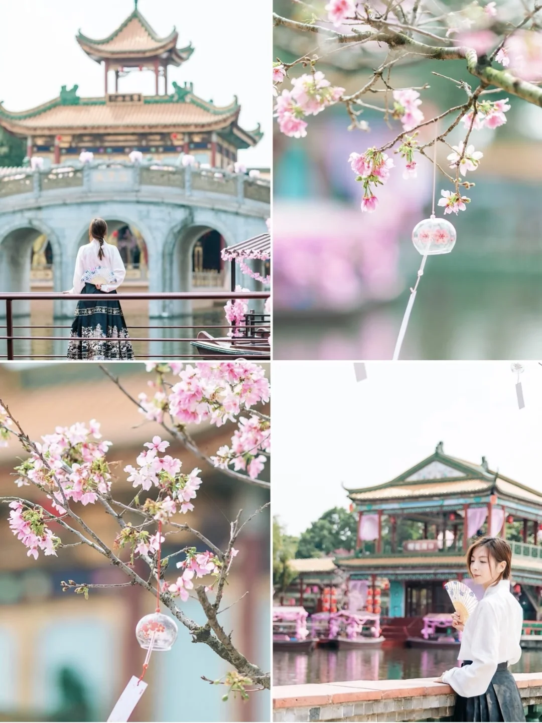 🌸樱花盛开的宝墨园真的美哭了‼️ 亭台楼阁 假山湖水相映成趣, 樱花与岭南建筑的古典美相结合 微风吹过~随着叮当叮当的风铃声🎐 花瓣缓缓飘落🌸 📷游览打卡 ✅紫气清莱牌坊 这里周边都有樱花,面的木棉花开了拍大景更好看 ✅紫带桥 可以站在桥上俯拍全景,远处拍人和桥的合影 ✅观鱼水榭 这里可以上二楼高机位拍到紫带桥和紫洞舫全景 不用航拍也可以拍到哦 ✅聚宝阁 湖边的建筑,可以拍到樱花和游船同框 ✅清明上河图 用浮雕工艺展现原画的场景,长达数十米, 细节丰富,堪称艺术珍品 📍宝墨园 🈺08:30-17:30 🚗番禺区沙湾镇紫坭村东安路 🅿️10/次 🚇地铁三号线市桥站再打车 🚗附近游玩: 📍南粤园 宝墨园出来走300米 📍沙湾古镇 🚗13分钟 八百年历史古镇 镬耳墙 满洲窗 蚝壳墙 🦪 一砖一瓦都带着历史的记忆!值得一逛! 📍紫泥塘 🚗8分钟 复古创意园