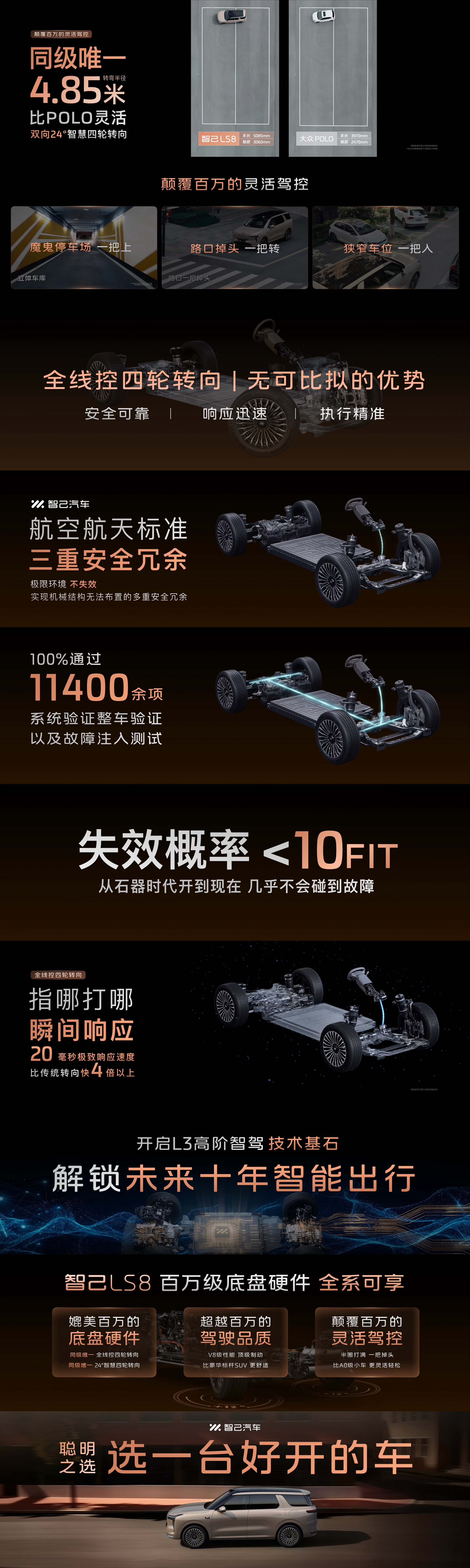 ✅ 灵活驾控:灵蜥数字底盘3.0+同级唯一双向24°智慧四轮转向,转弯半径仅4.85米,比POLO还灵活!全线控四轮转向20毫秒极速响应,一把掉头、窄位停车轻松拿捏,开大车也有小车的灵动。